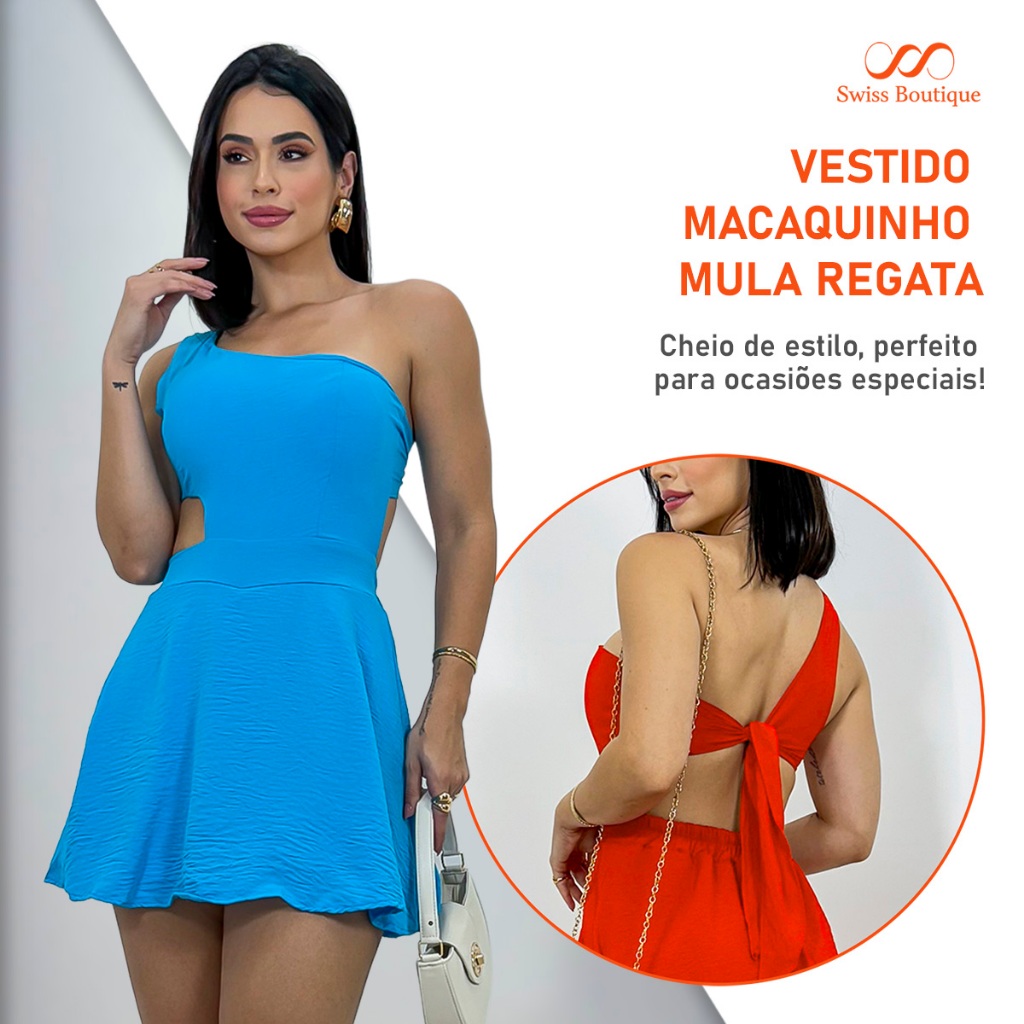 Vestido Macaquinho Curto Ombro Só Regata Babado Soltinho De Amarrar Zai