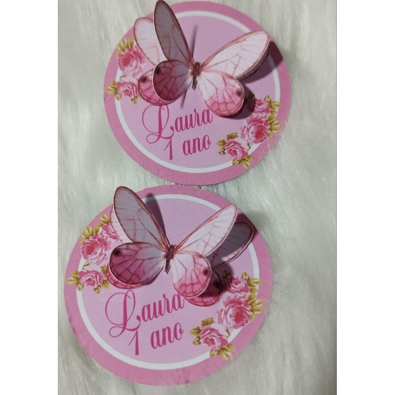 TAG para esfera acrílico 6,5 cm personalizado tema jardim encantado borboleta dupla