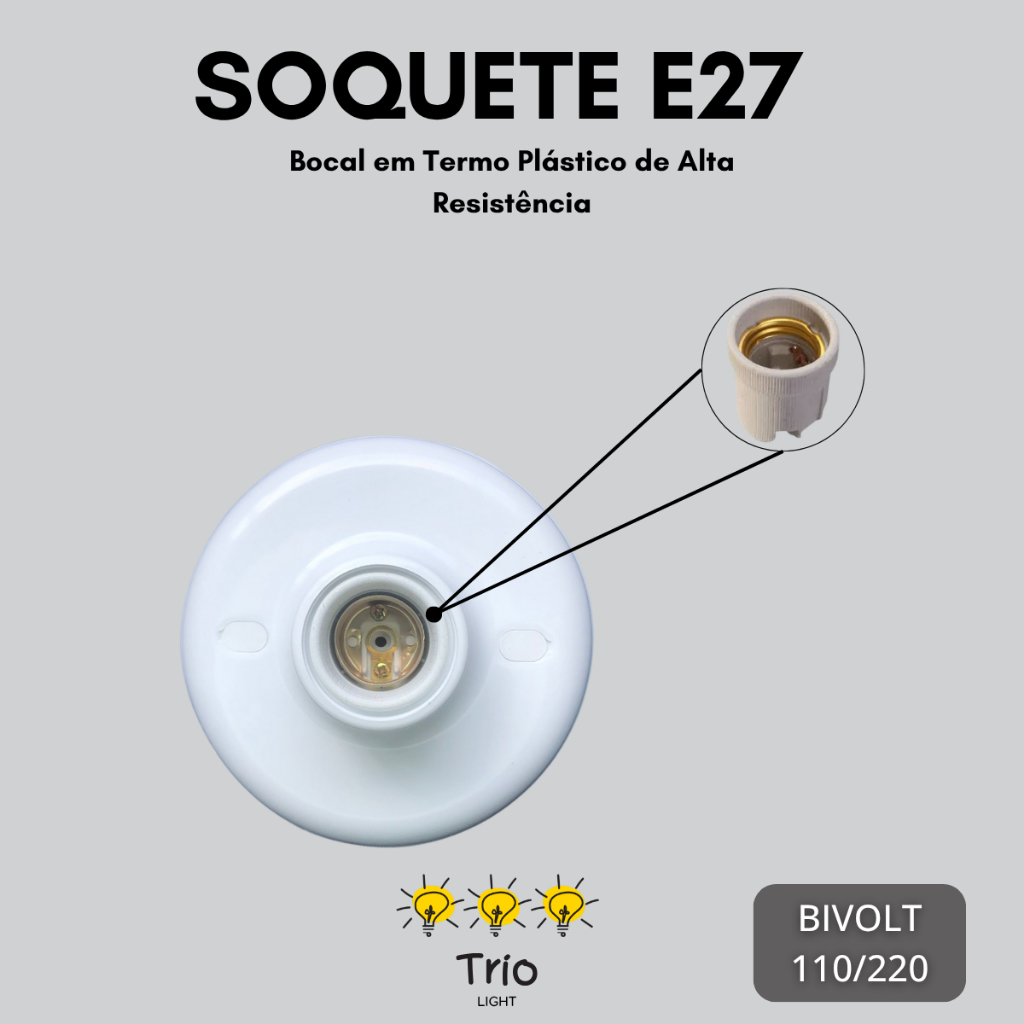 Kits Diversos Plafon Soquete E27 Branco Bivolt Plafonier Redondo Luminaria Bocal de Teto