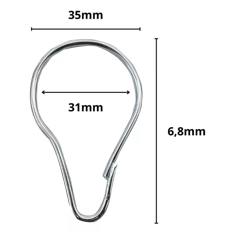Gancho Argola Metal Com Trava Para Cortina Encartelados Tipo Pera Grande 35mm