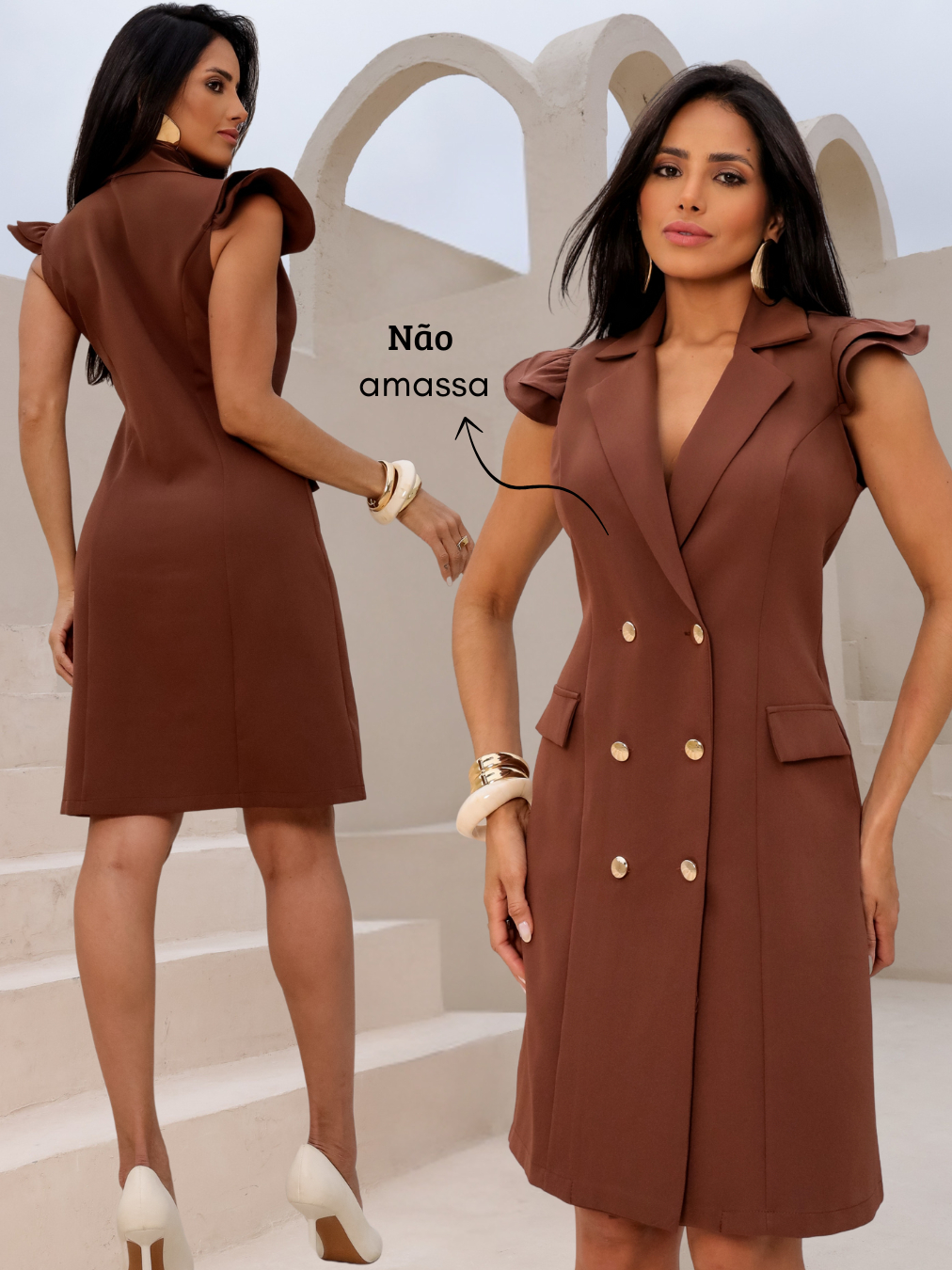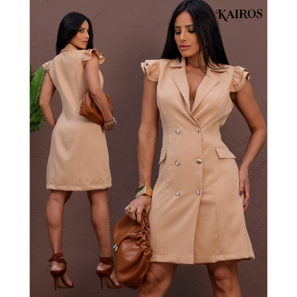 Vestido feminino em alfaiataria curto e com gola lapela elegante