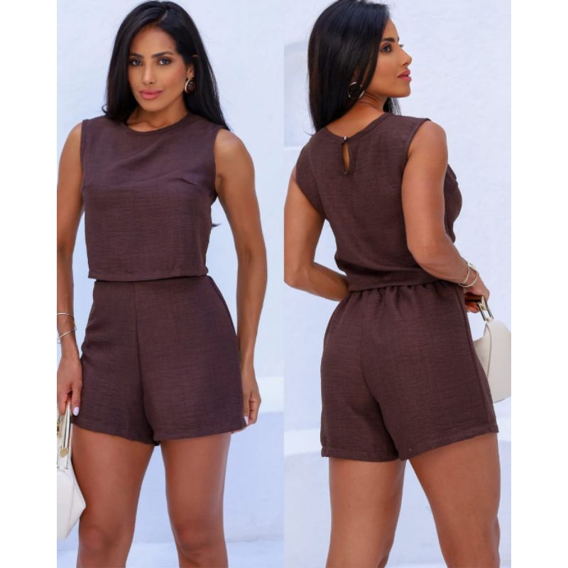 Conjunto Feminino cropped e short Verão Linho Duna Premium