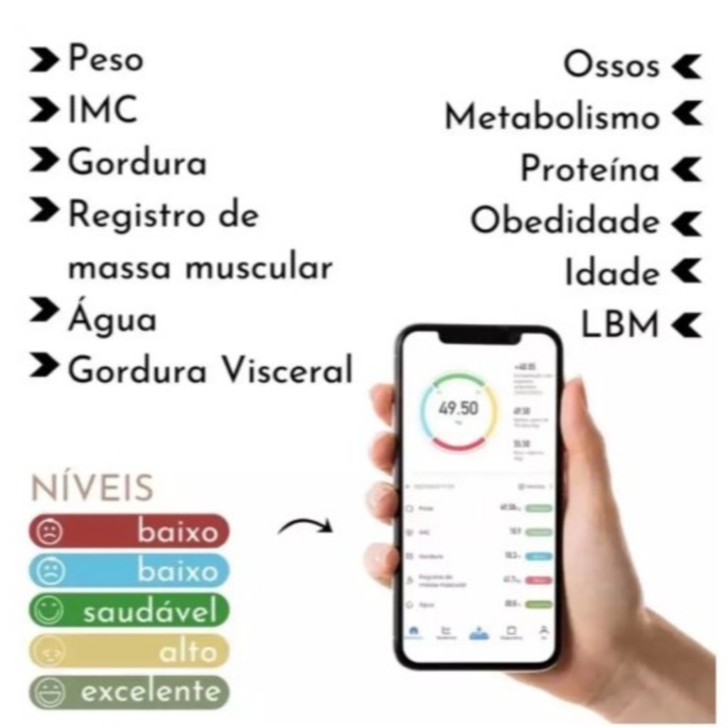 Balança Corporal Bioimpedância Profissional Bluetooth 180KG. - AT