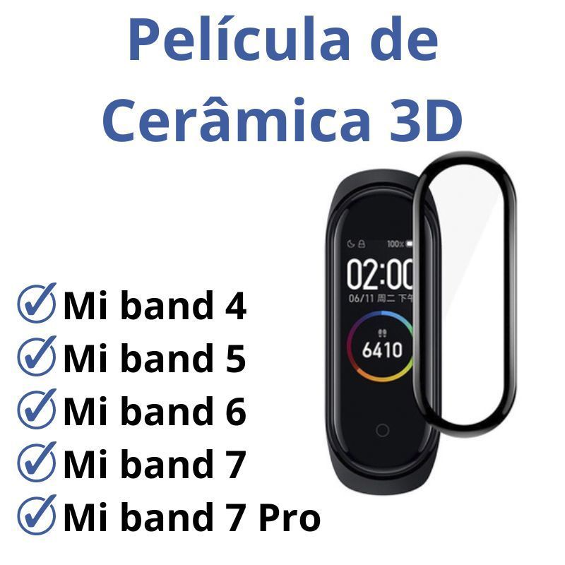 Pelicula de Ceramica 3D Flexivel Anti-Impacto para Mi band 4/ 5/ 6/ 7/ Mi 7 Pro - Pronta Entrega