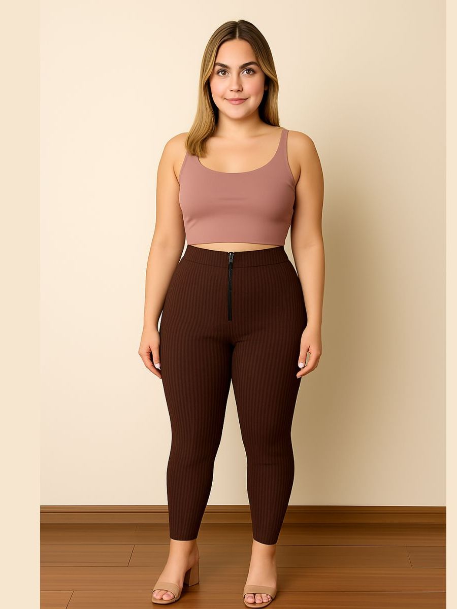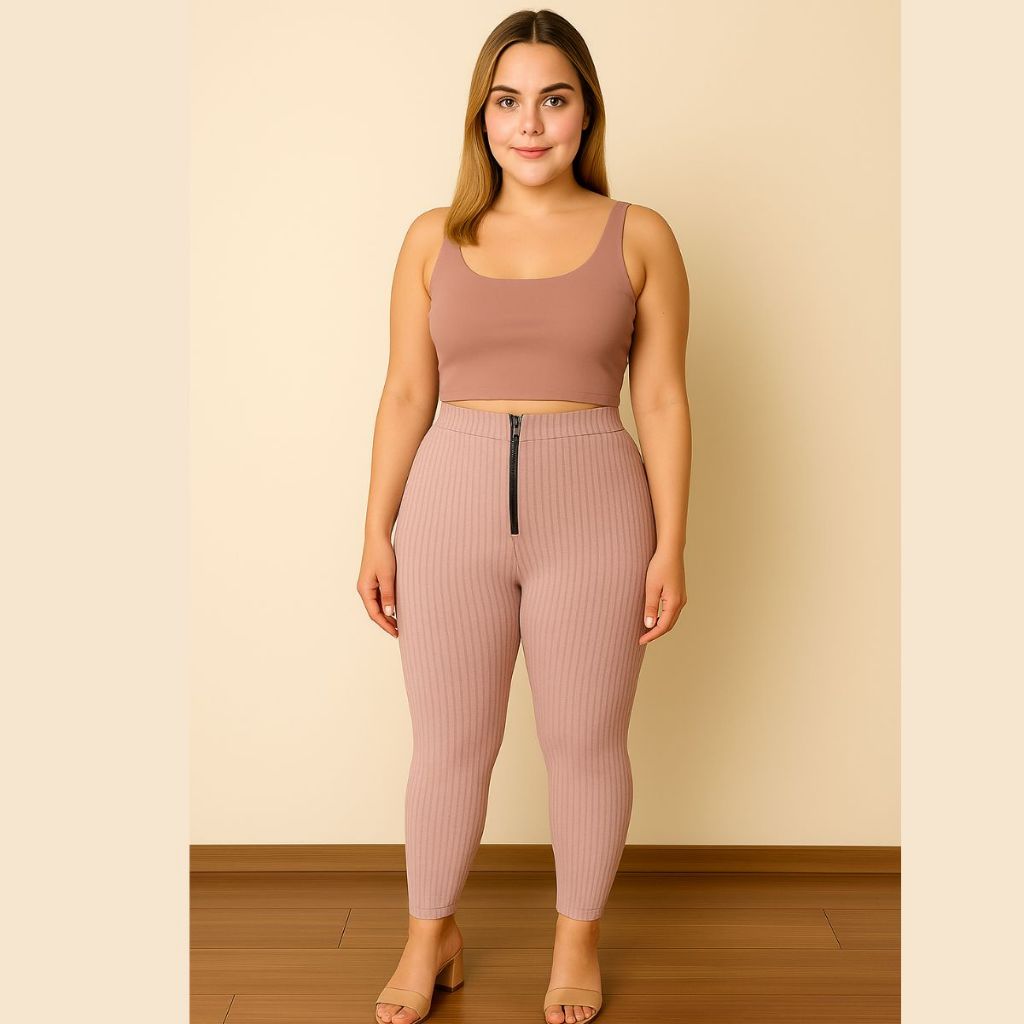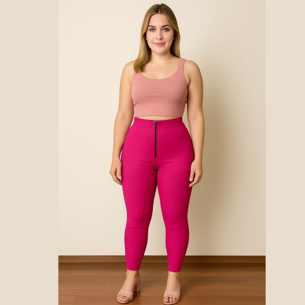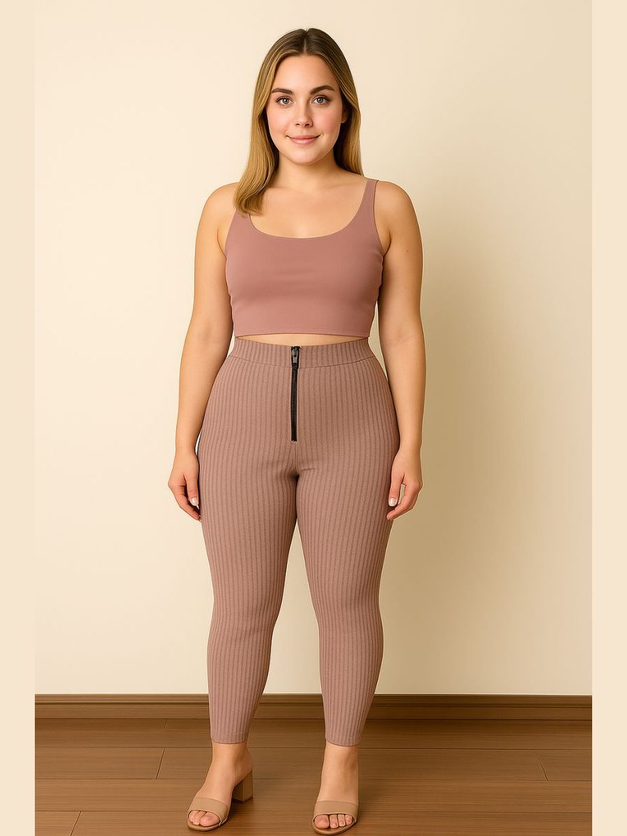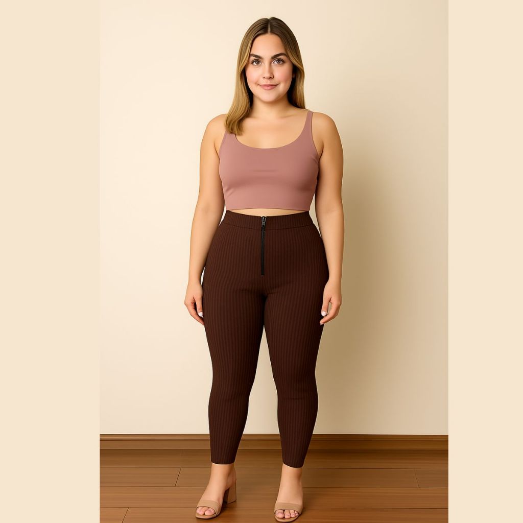 Calça Isa com zyper tecido canelado 3D Tendência Montaria