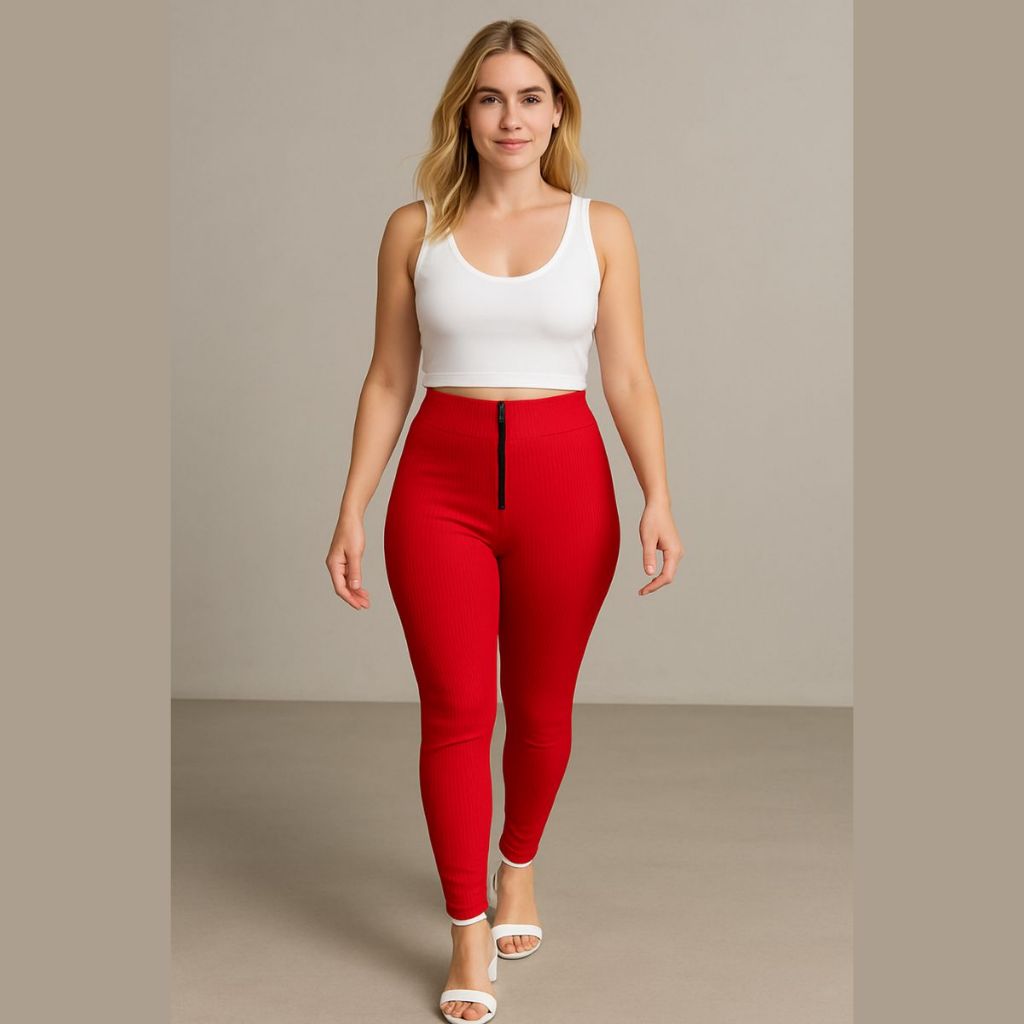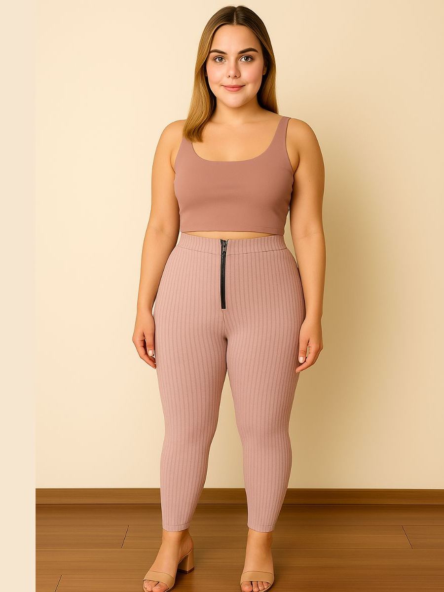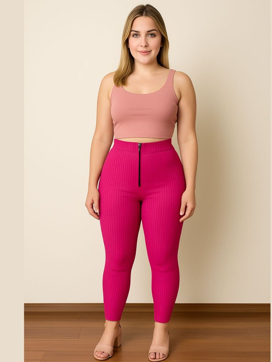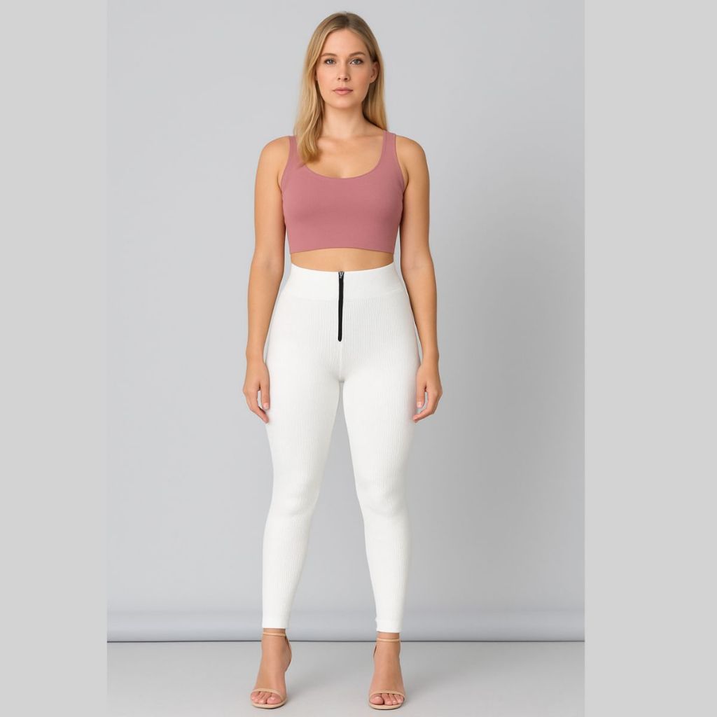 Calça Isa com zyper tecido canelado 3D Tendência Montaria