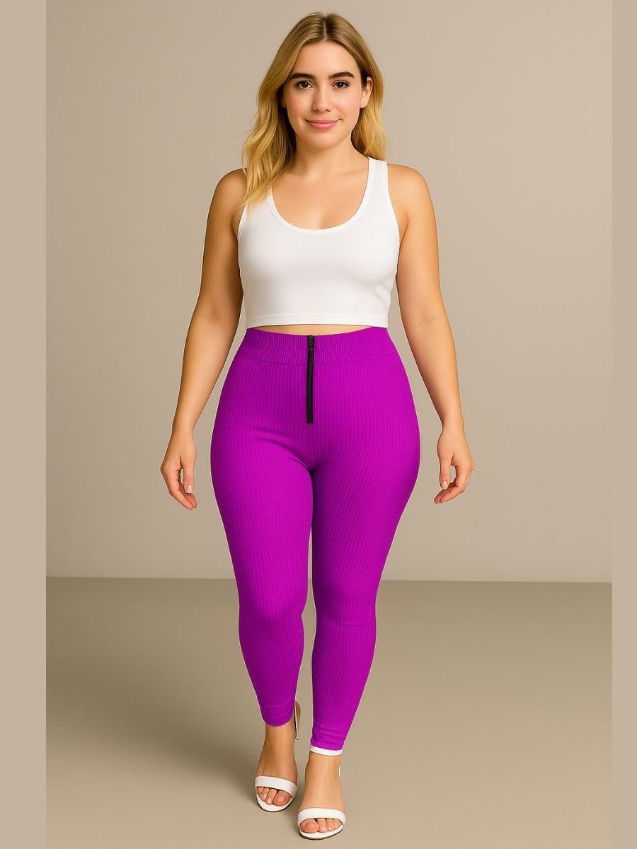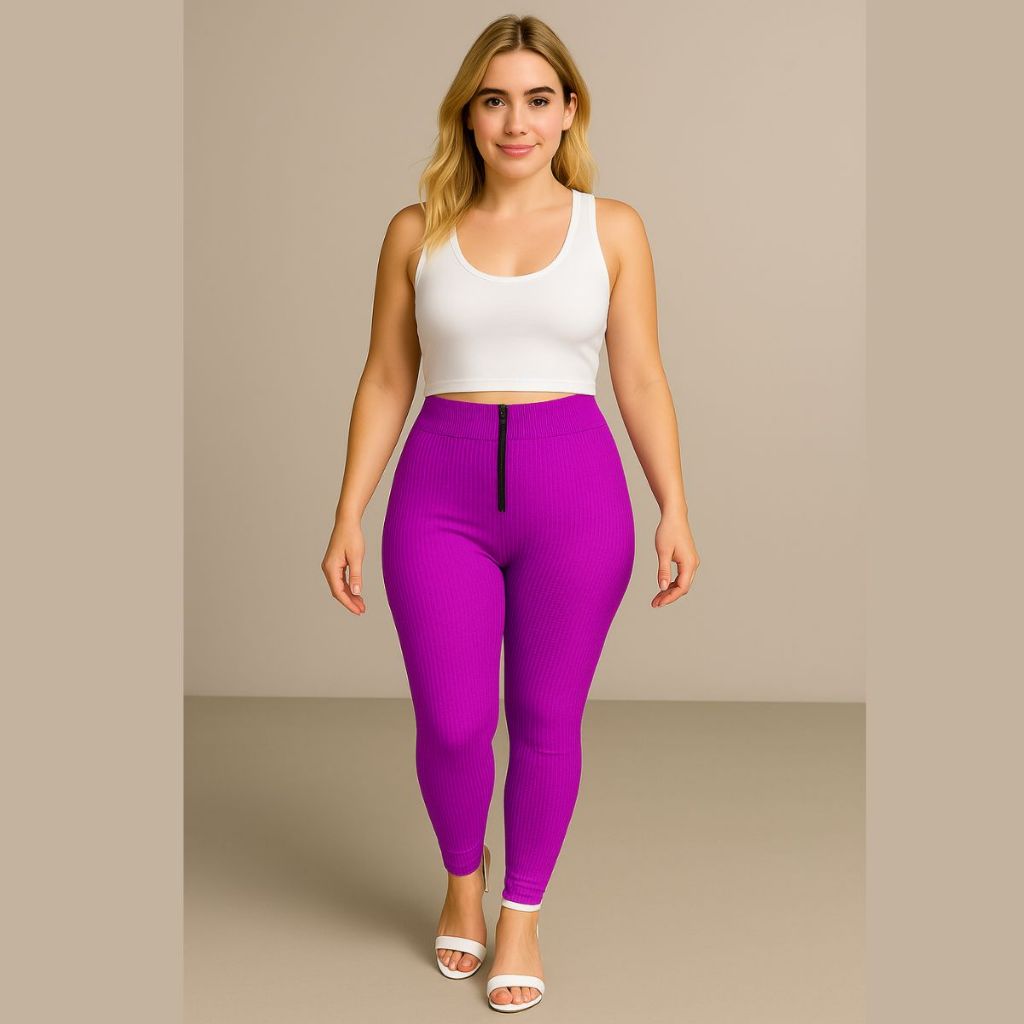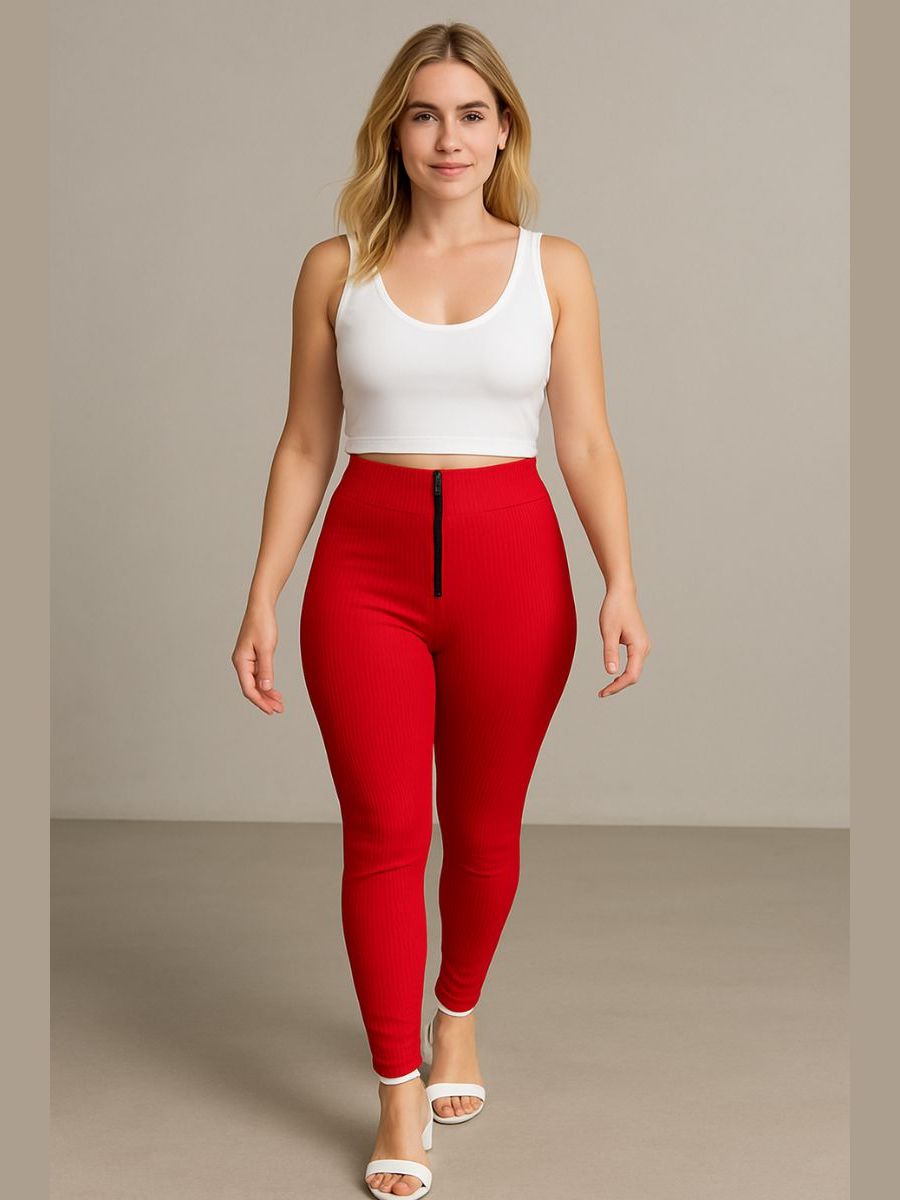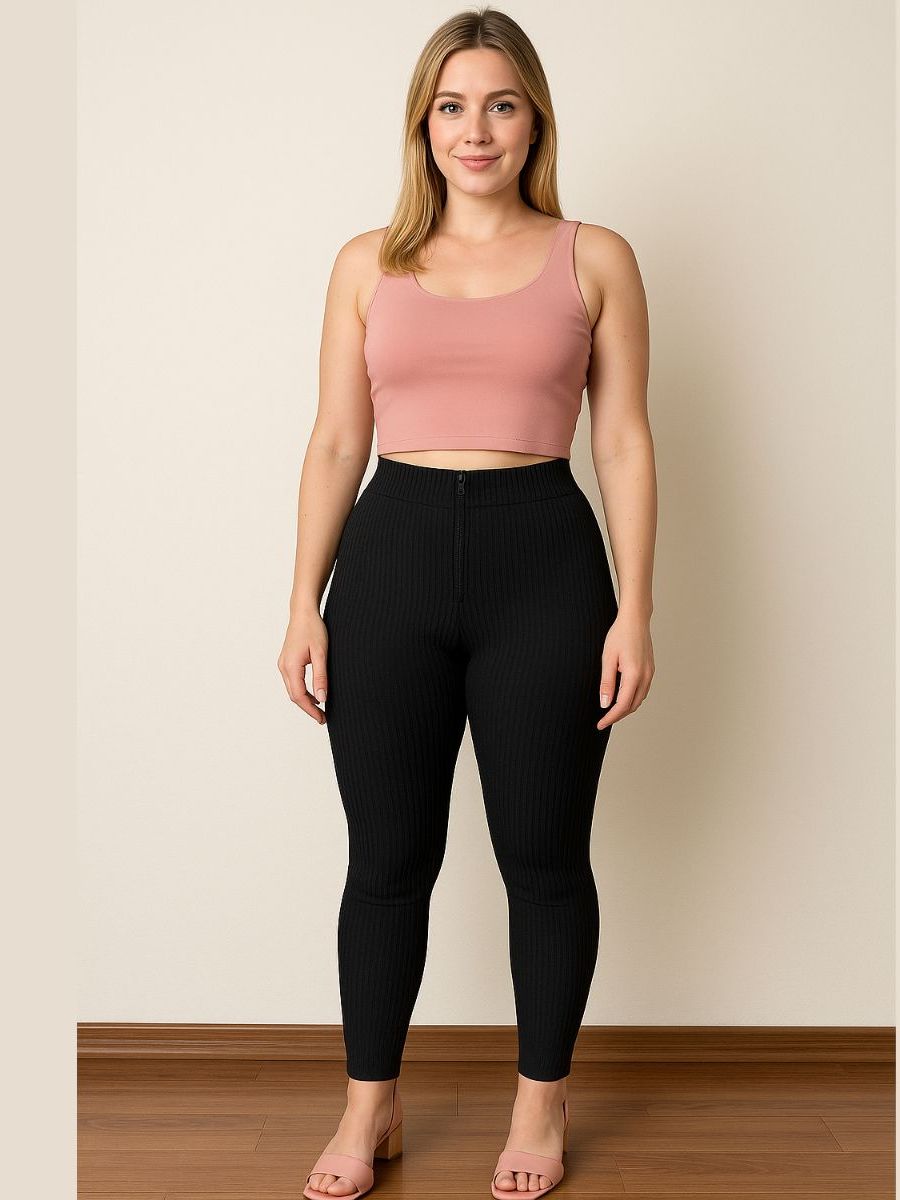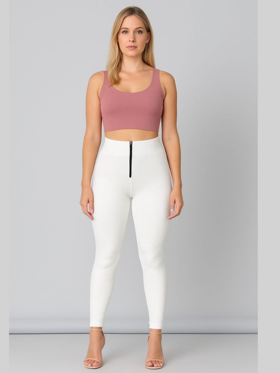Calça Isa com zyper tecido canelado 3D Tendência Montaria
