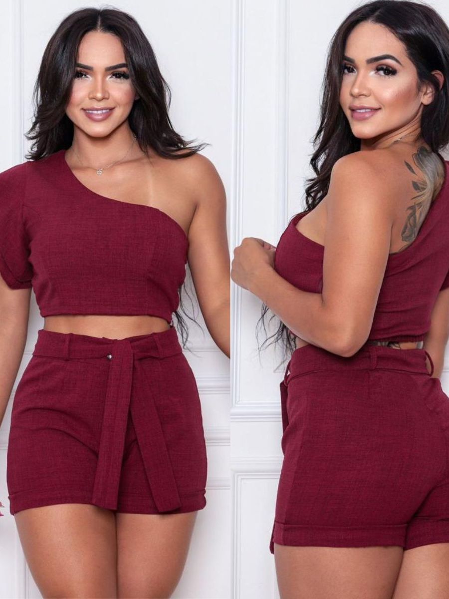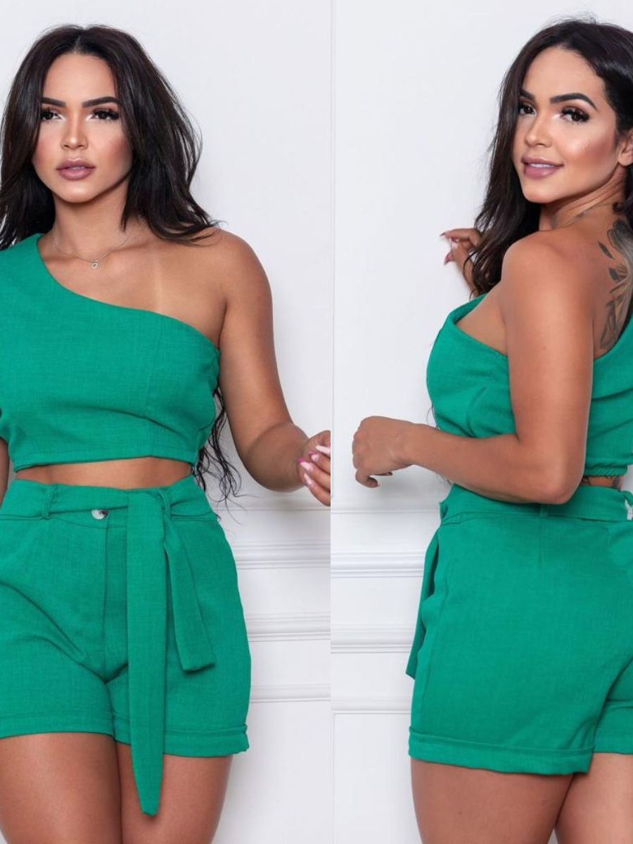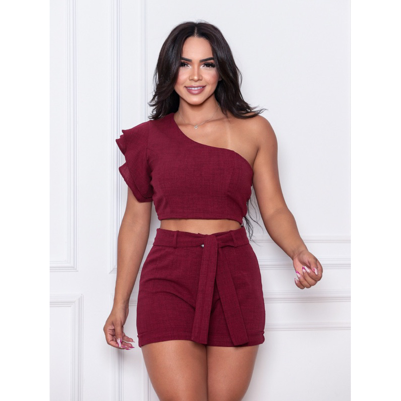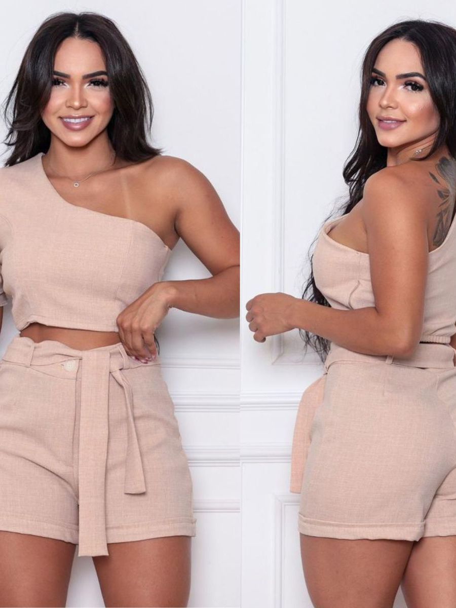 Conjunto Prin Cropped Mula Manca em Tecido Linho Verão 2024