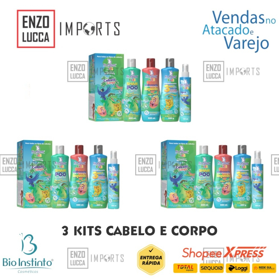 3 Kits Cabelo e Corpo Kids Bio Instinto