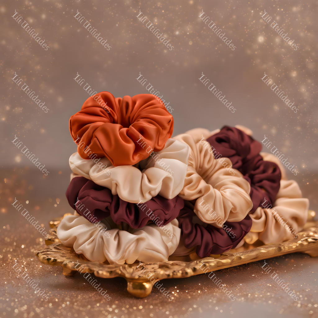 Kit 12 Xuxinha de Cetim com Costura Embutida Anti Frizz Acessório Para Cabelo