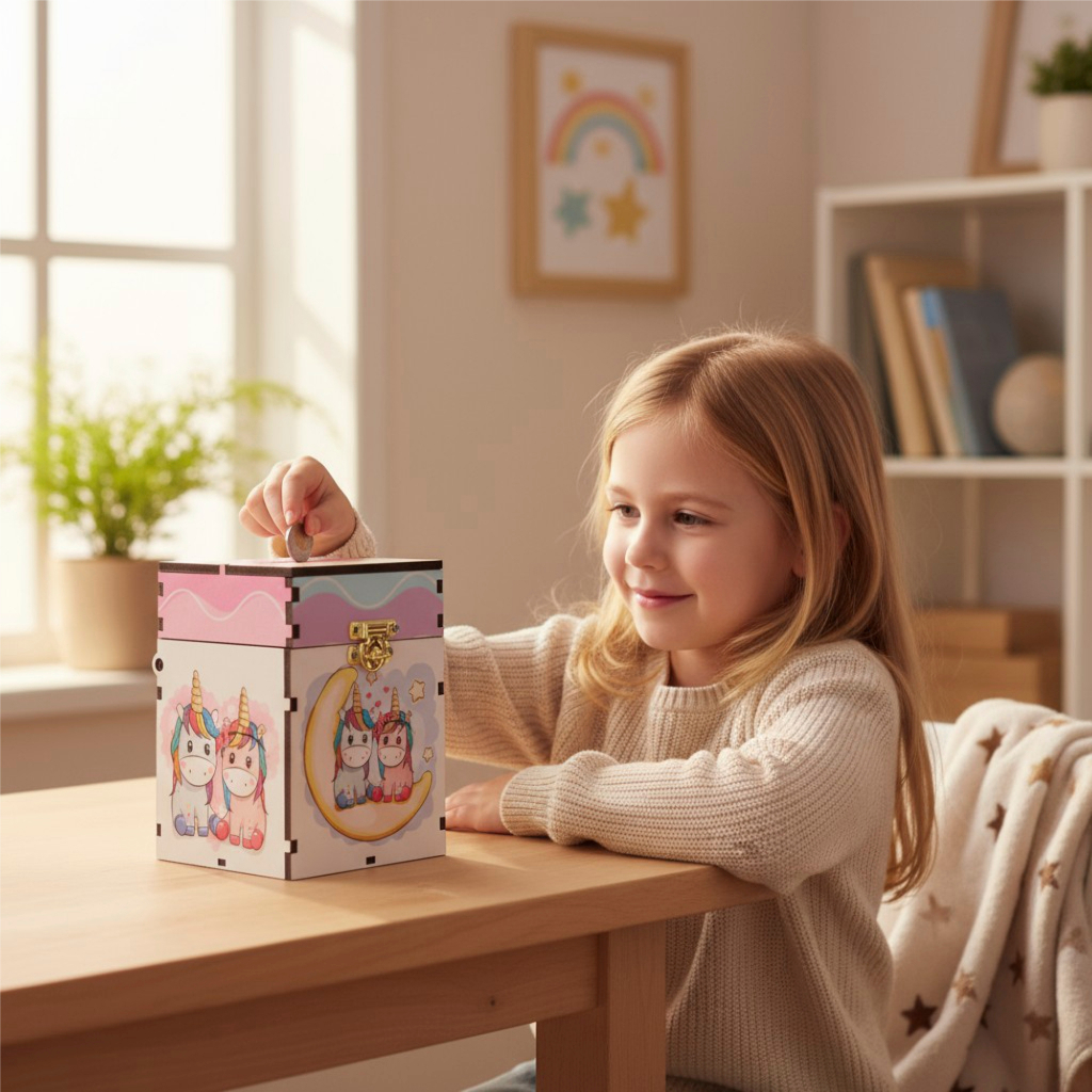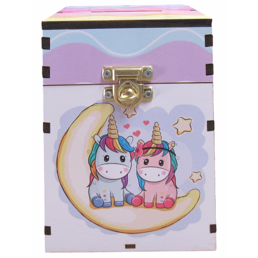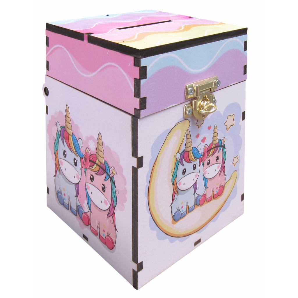 Urna Cofre Infantil Com Fecho Para Cadeado Decoração Unicórnios