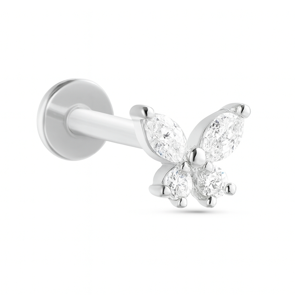 Piercing Tragus Helix Labret Conch Minibarbell Microbell Orelha Coração Borboleta Arco Aço Inoxidável Antialérgico