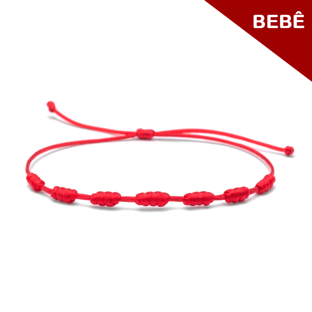 Pulseira 7 Nós para Bebês Vermelha Preta Dourada Azul Diversas Cores Proteção Cabala Kabbalah