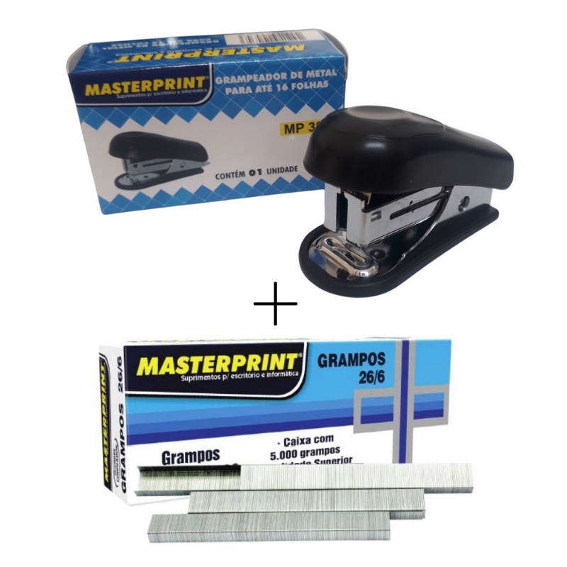 Kit Grampeador Mini + 5.000 Grampos Galvanizados 26/6 Escritório Escolar MASTERPRINT