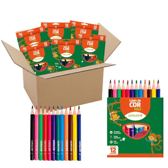 Kit 3 Caixas de Lápis de Cor Mini Caixa com 12 Cores cada Escolar Leo&Leo