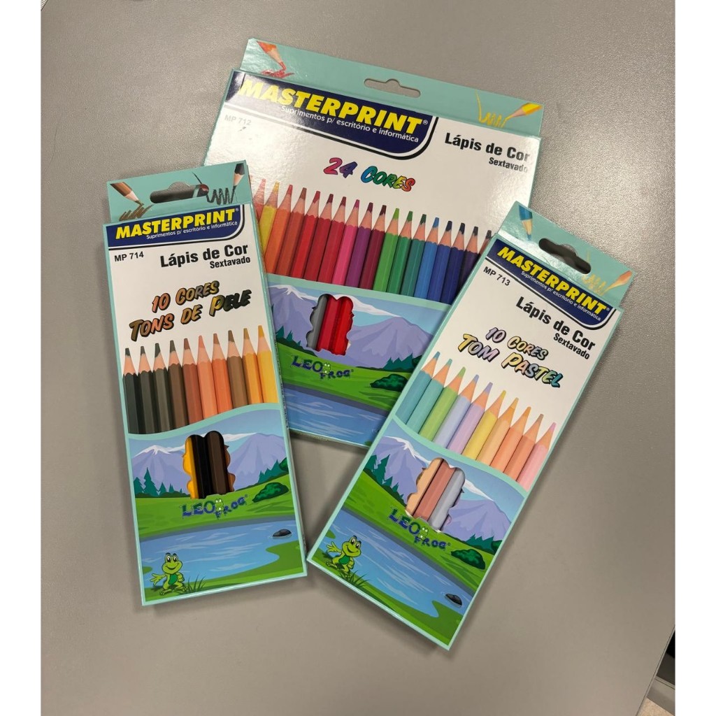 Kit 56 Lápis de Cor (36 CORES + 10 Cores Tom Pastel +10 Cores Tons de Pele) Escolar Sextavado