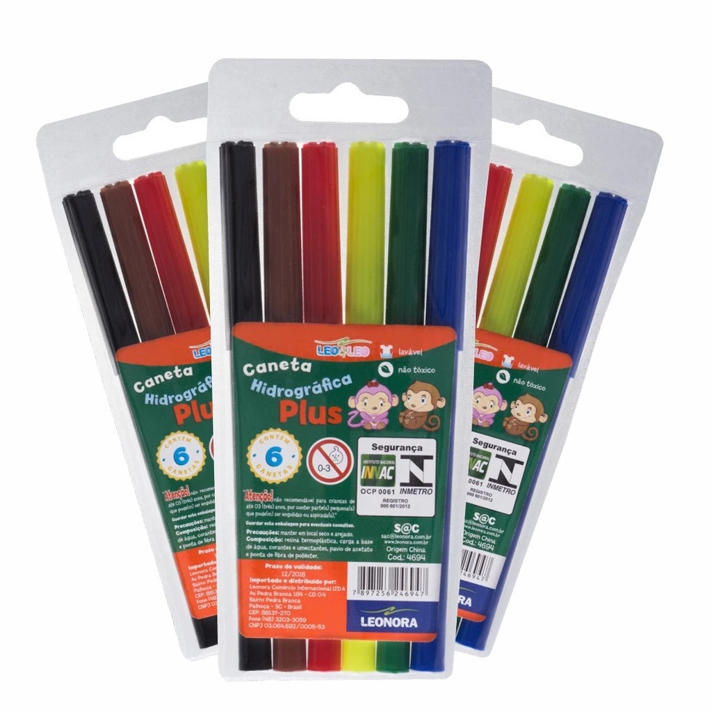Kit 6 Estojos Canetinha Hidrográfica 6 Cores Hidrocor 36 Canetinhas Escolar Infantil Leo&Leo