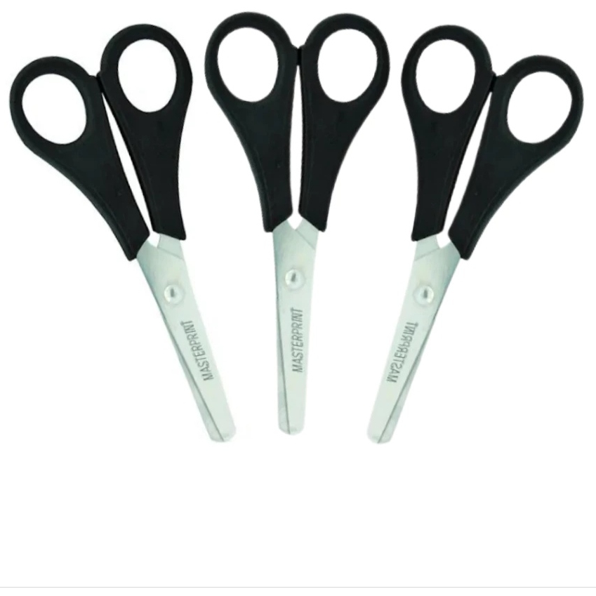 Kit 2 Tesouras Escolar Cabo Preto Infantil 13cm Sem Ponta Masterprint
