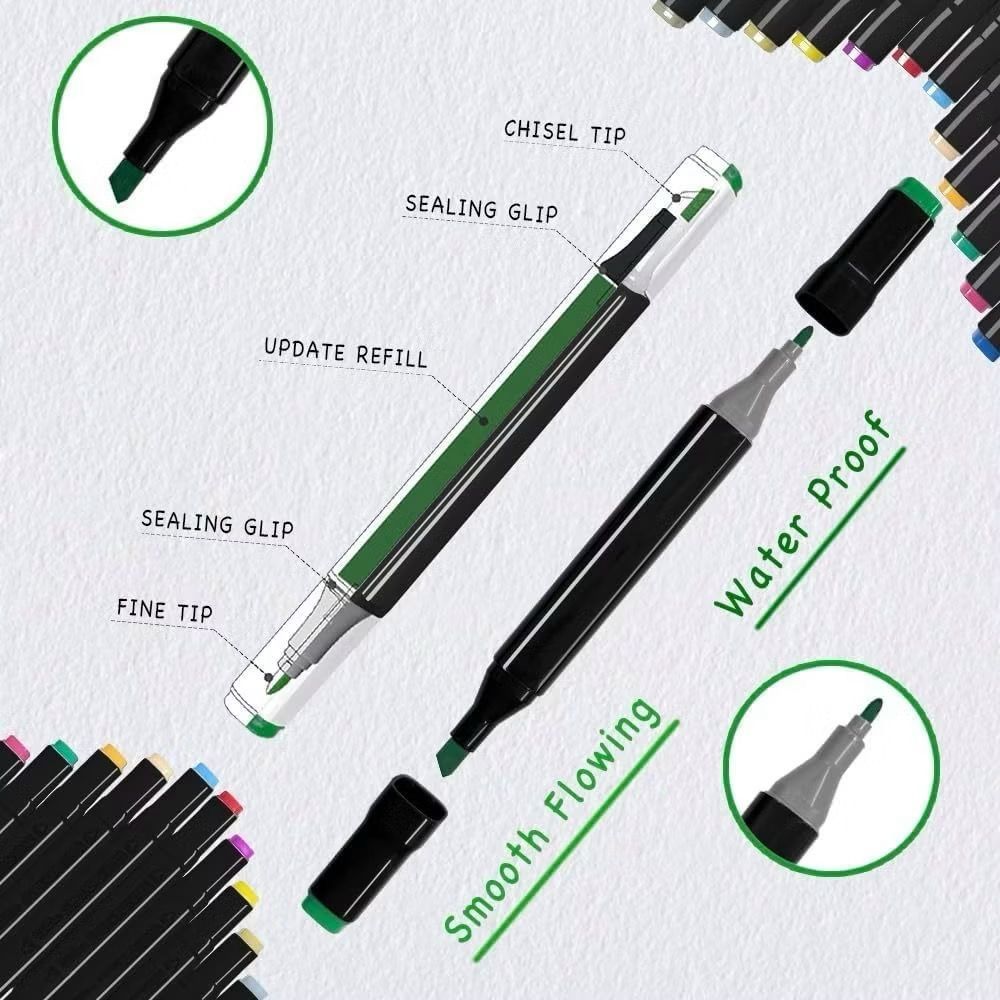 Caneta Marcadora De Ponta Dupla 24/36/48/60/80 Cores Oleosa Montagem Artística Para Estudantes Material Escolar