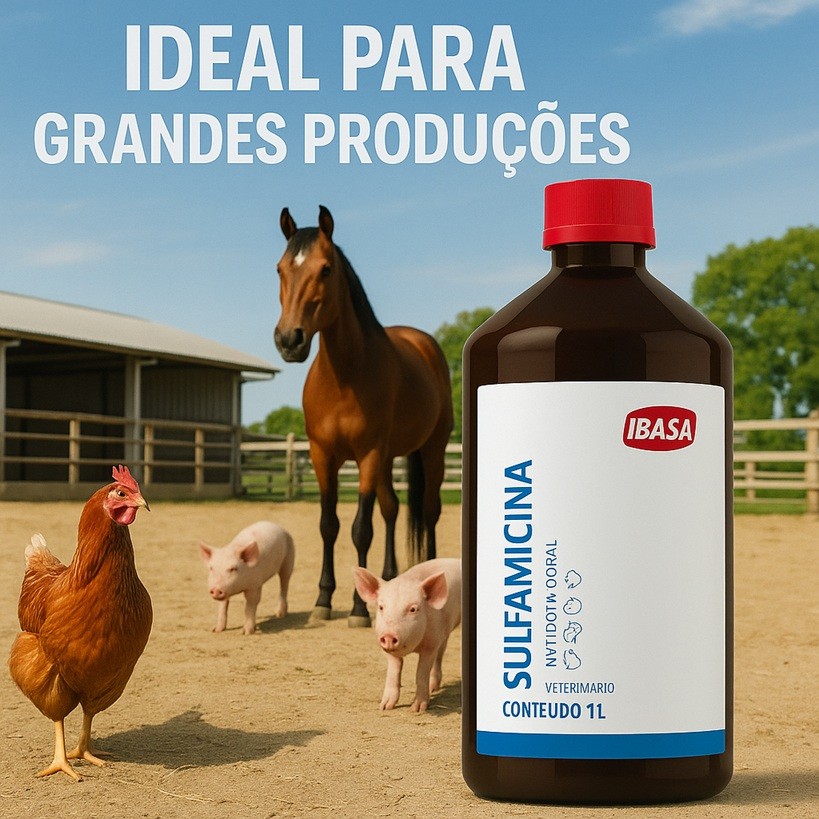 Kit 2 Sulfamicina IBASA 1L Antibiótico Oral Tratamento Coccidiose Coriza Aves