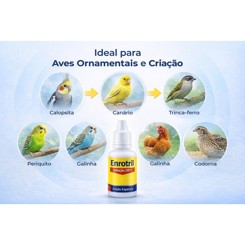 Enrotril Solúvel 20% 10ml Antibiótico Para Pássaros e Aves - Vetbras