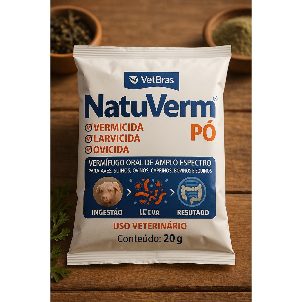 Kit 15 NatuVerm Pó 20g Vermífugo Oral Larvicida Ovicida Para Aves Suínos Bovinos Equinos - VetBras