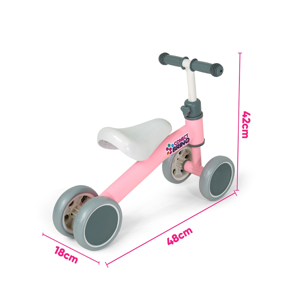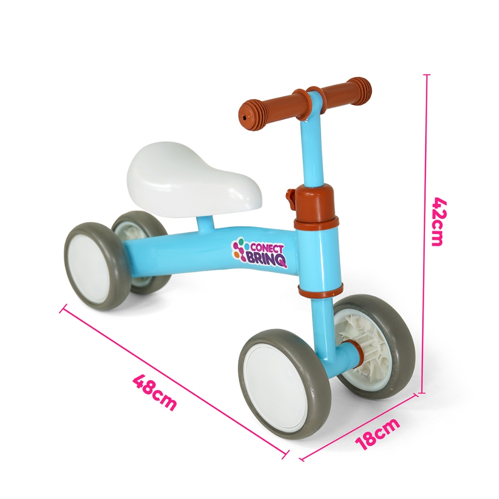 Bicicleta De Equilíbrio Infantil 4 Rodas Conect Brinq, Sem Pedal, Estável, Aprendizado Seguro