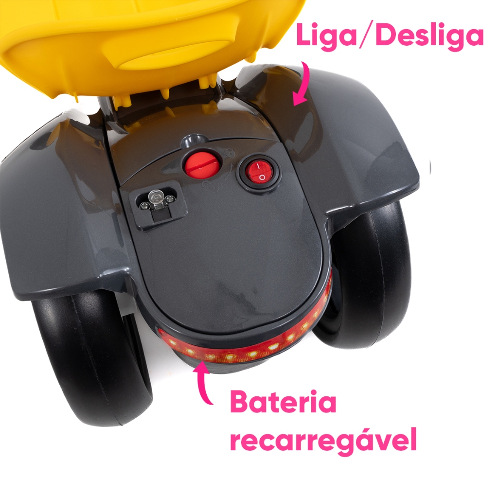 Mini Carro Elétrico Infantil Conect Kart com Controle Remoto, Luzes LED, Som, Bateria Recarregável