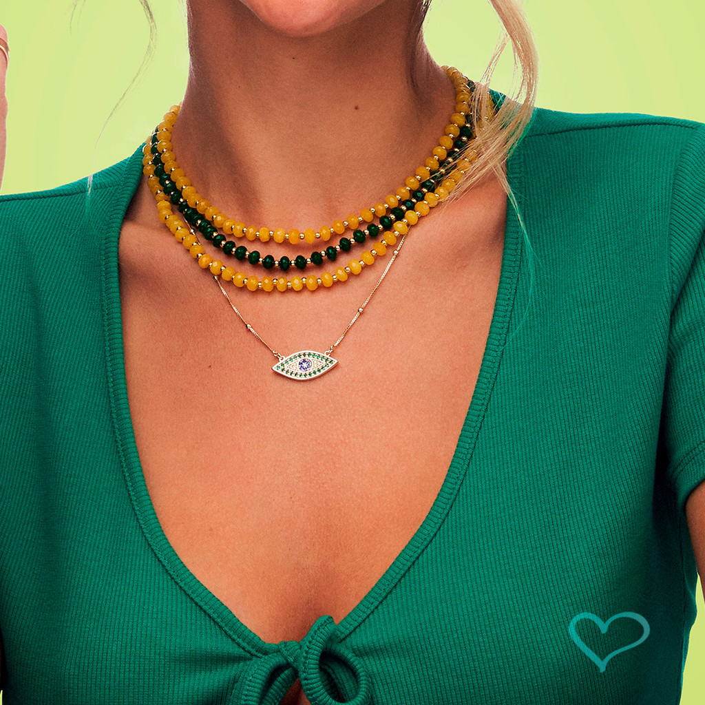 CHOKER GEORGINA PEDRAS NATURAIS JADE RONDEL AMARELA