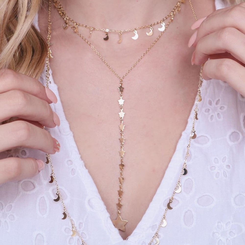 MIX 3 COLARES ECLIPSE LUA E ESTRELAS FOLHEADO A OURO 18K PIUKA