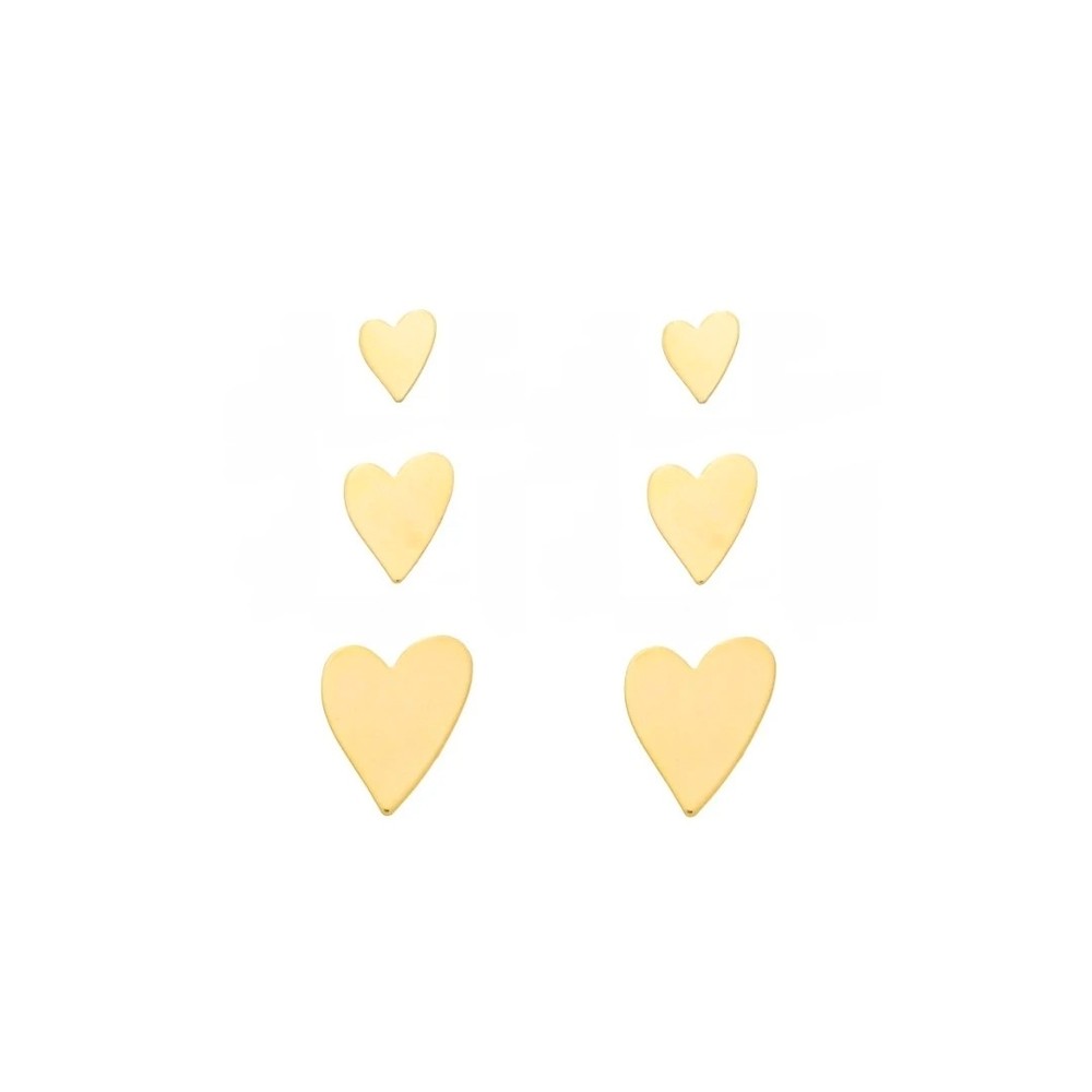 TRIO DE BRINCO CORAÇÃO PIUKA FOLHEADO A OURO 18K