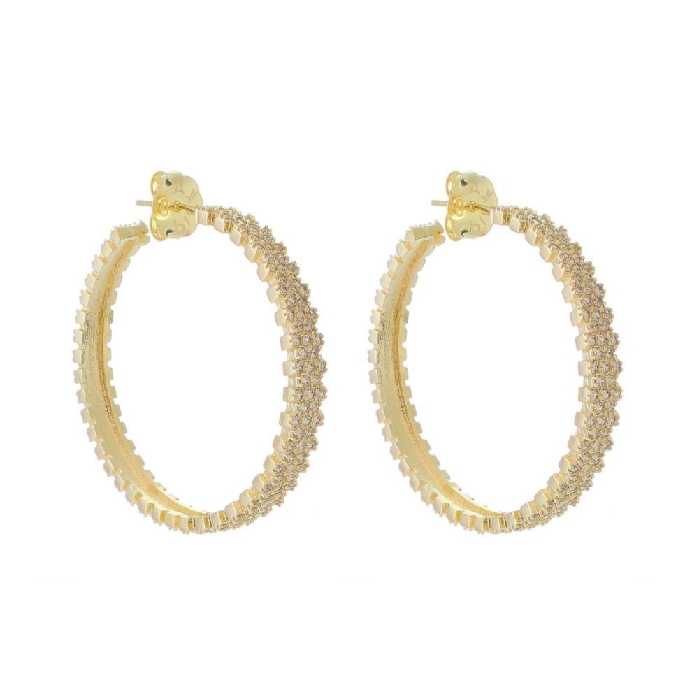 BRINCO PIUKA ARGOLA SEMI ABERTA FANY TRÊS FILEIRAS ZIRCÔNIA FOLHEADO A OURO 18K