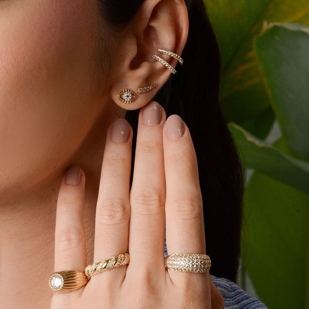 BRINCO IRIS OLHO GREGO ZIRCÔNIAS FOLHEADO A OURO