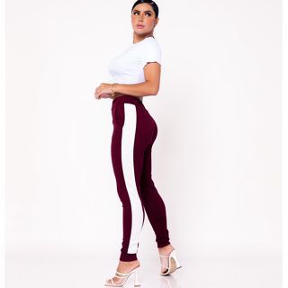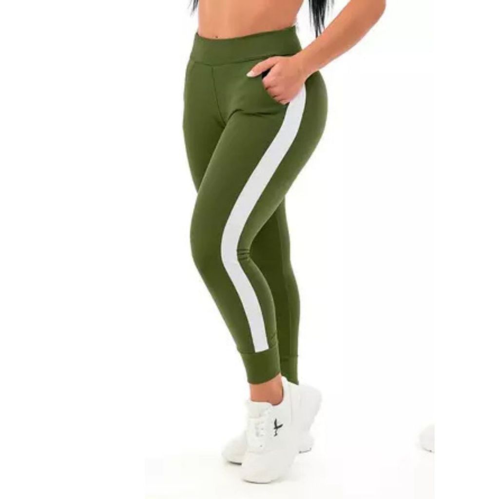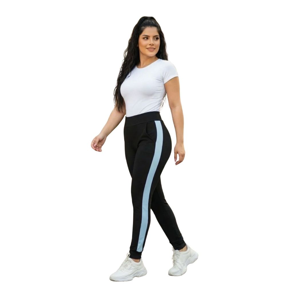 Calça Feminina Jogger Listrada Crepe Slim Fit Academia Casual com Punho Plus Size