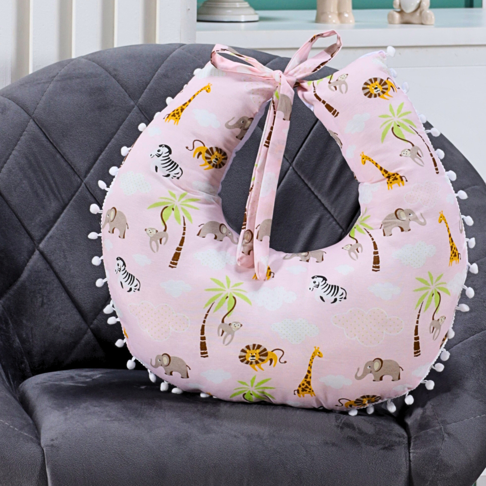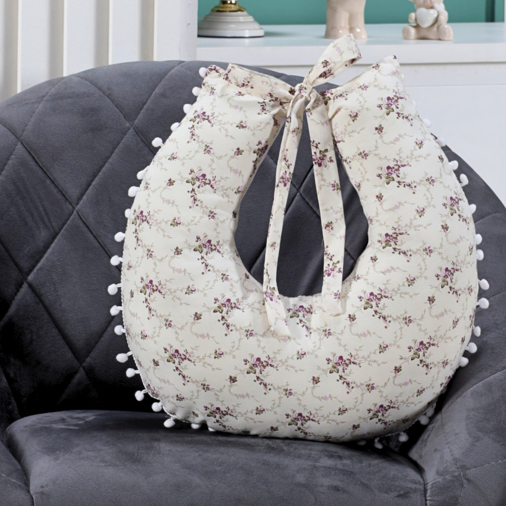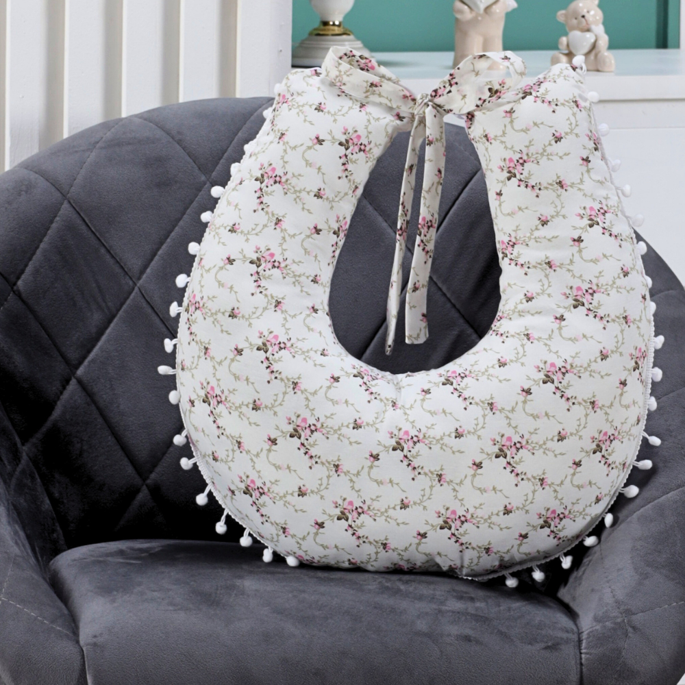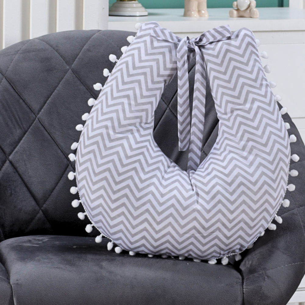 Almofada Amamentação para Amamentar Travesseiro com Zíper e Pompom Grelot 100% Algodão