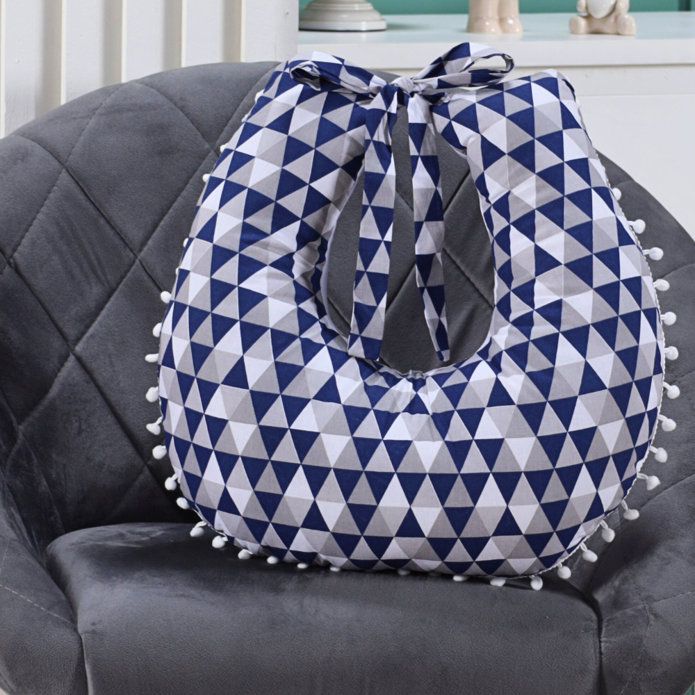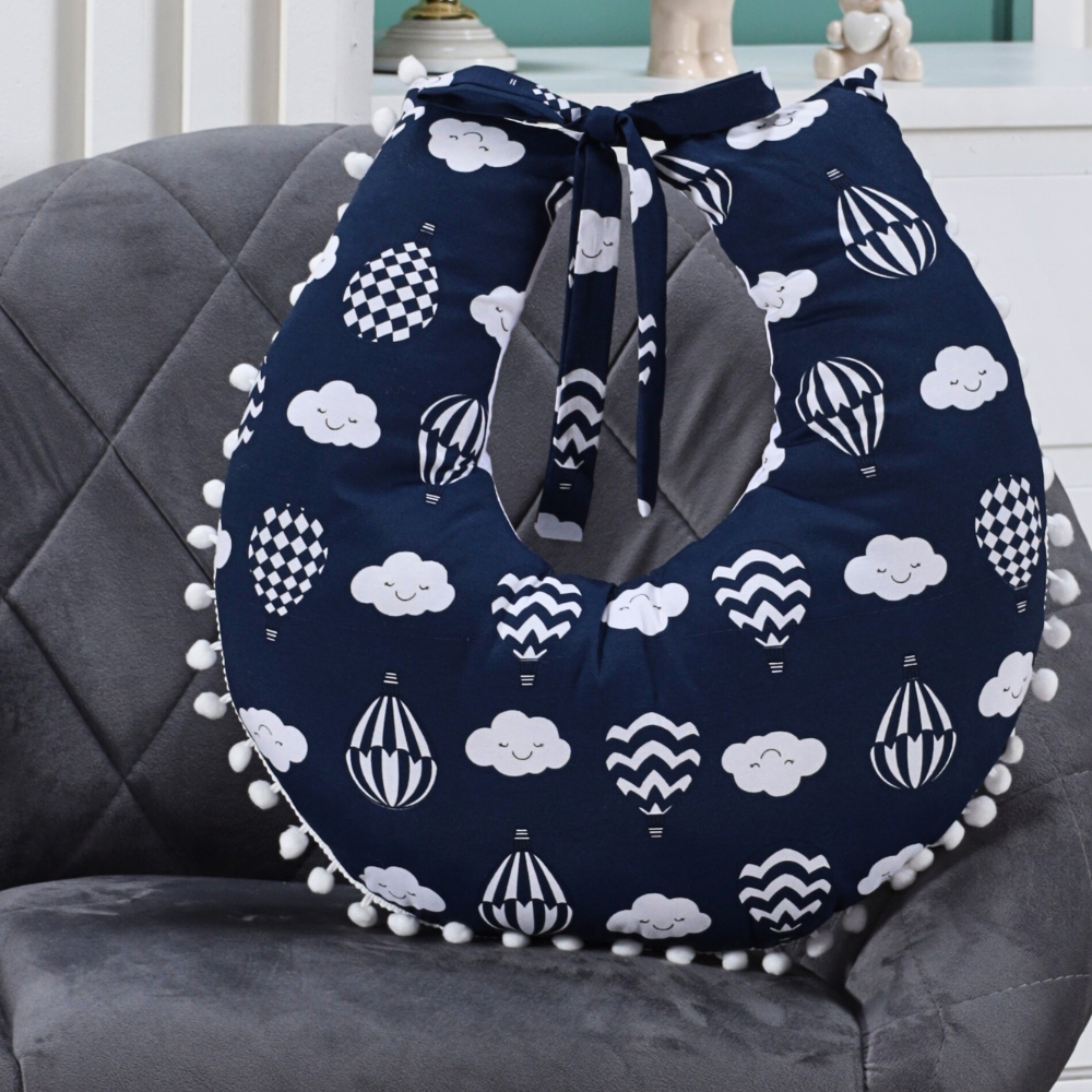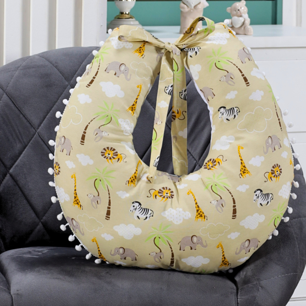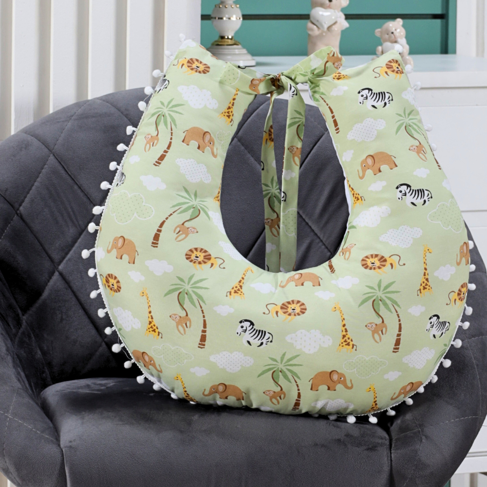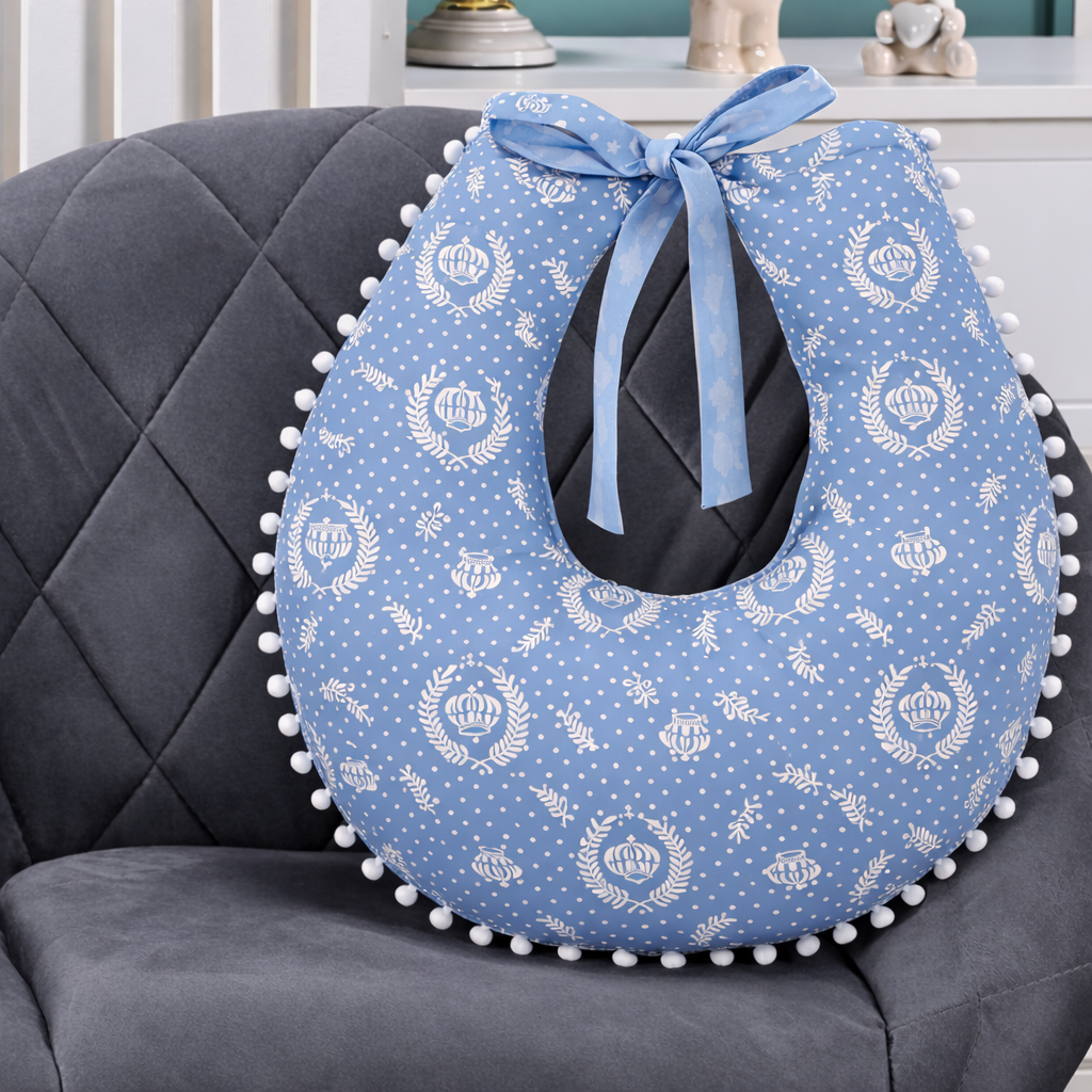Almofada Amamentação para Amamentar Travesseiro com Zíper e Pompom Grelot 100% Algodão