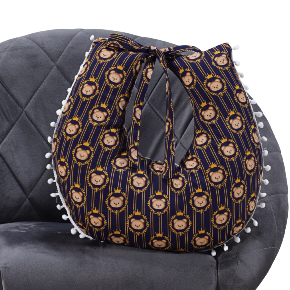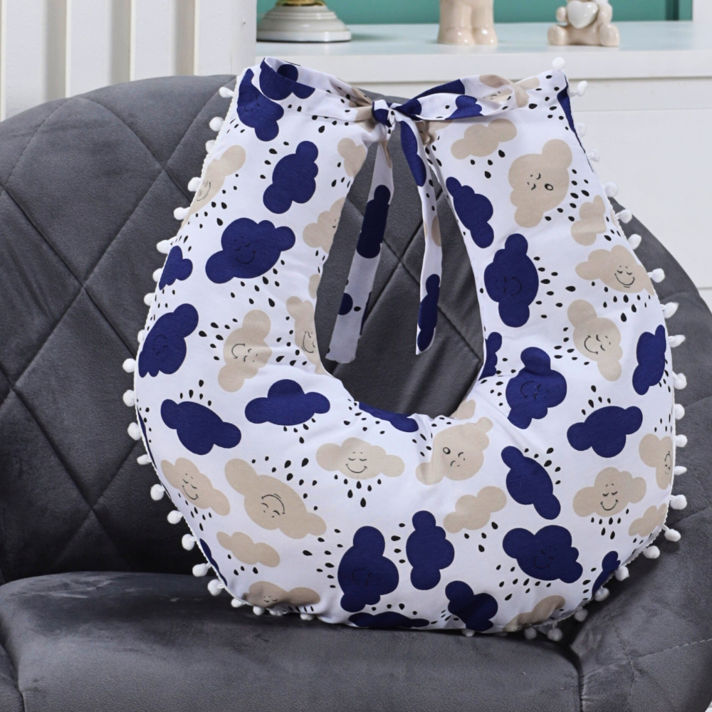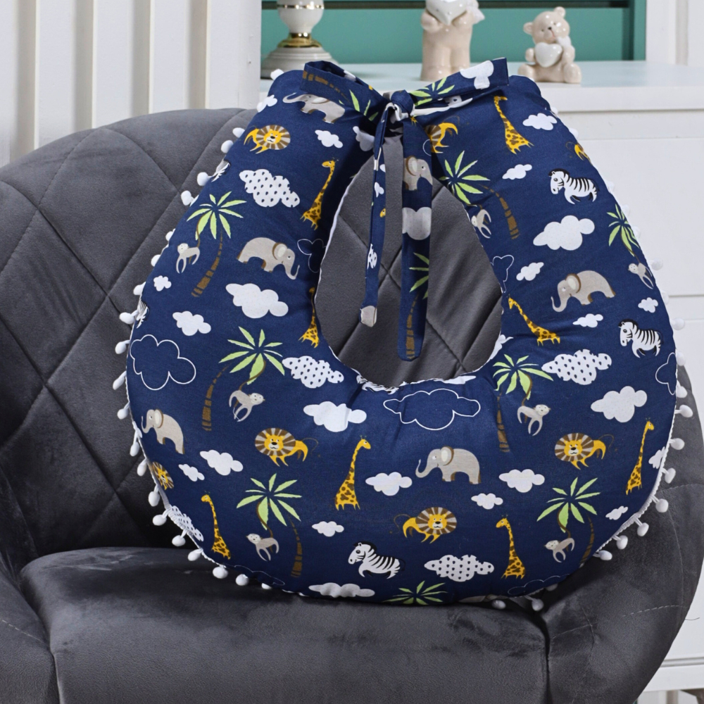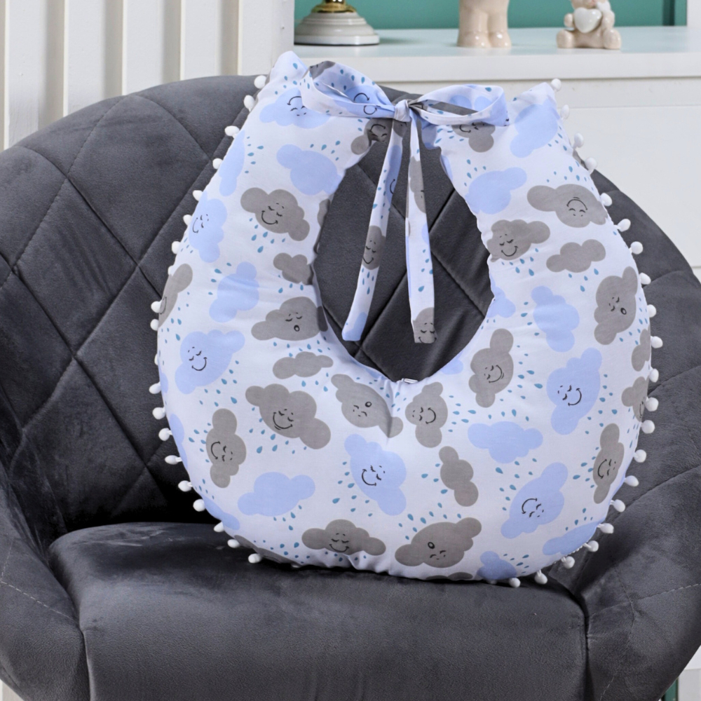Almofada Amamentação para Amamentar Travesseiro com Zíper e Pompom Grelot 100% Algodão