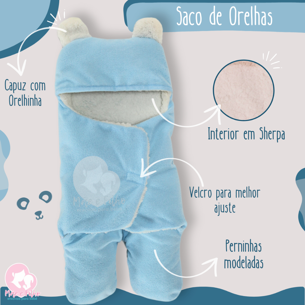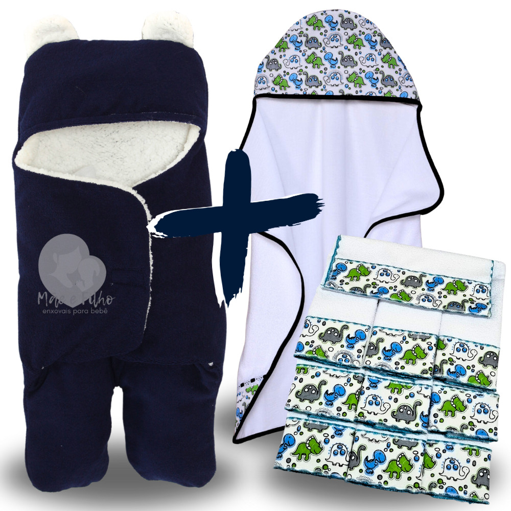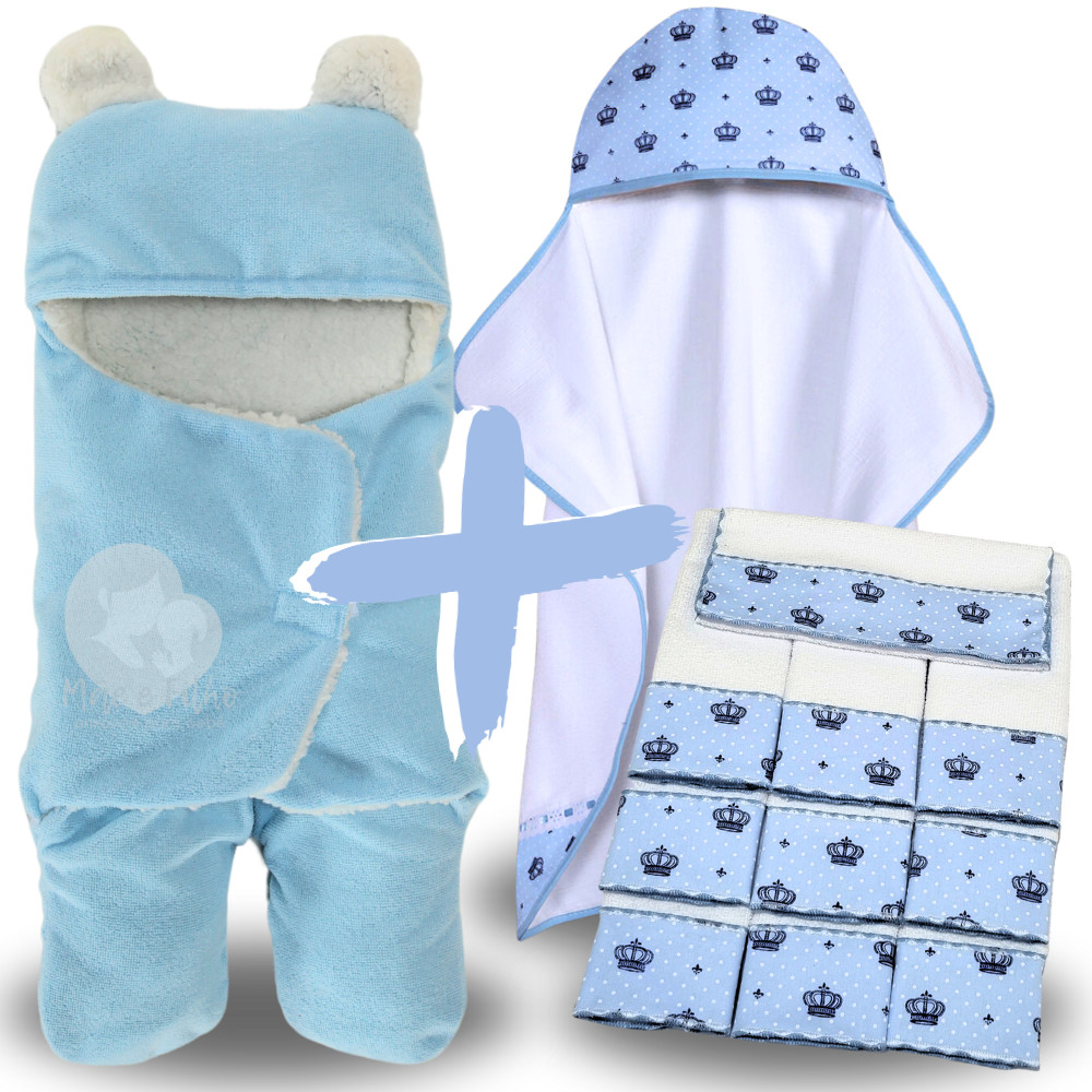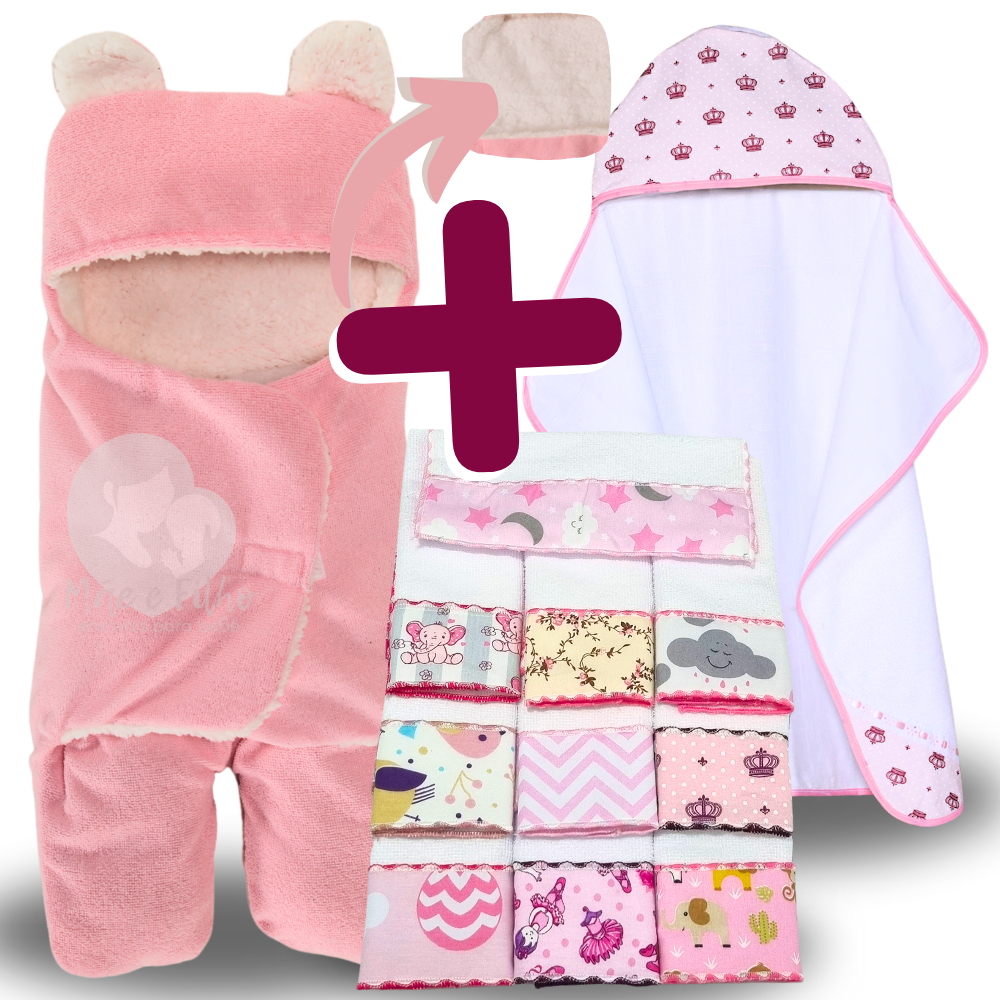 Kit Toalha Banho Bebe + Saco de Dormir com Orelhas + 6 Toalhas de Ombro Felpuda Atoalhada