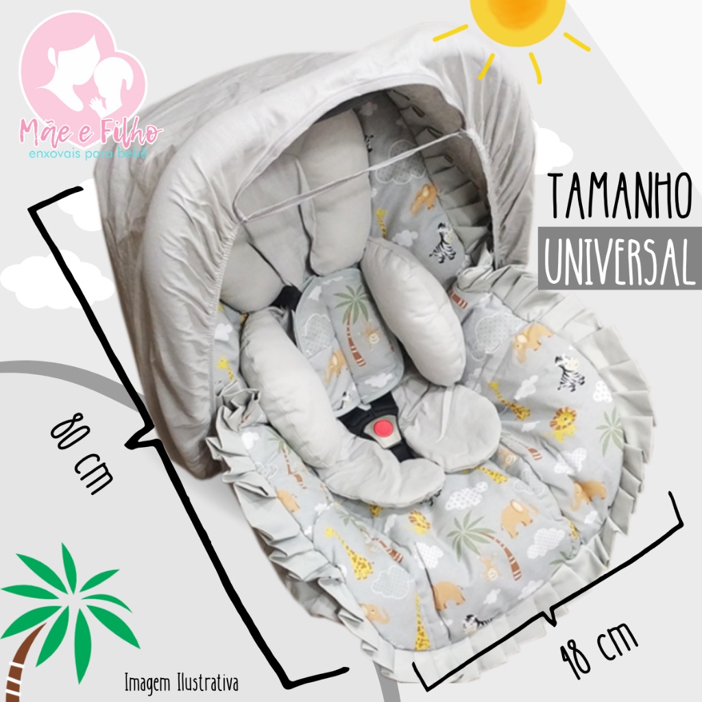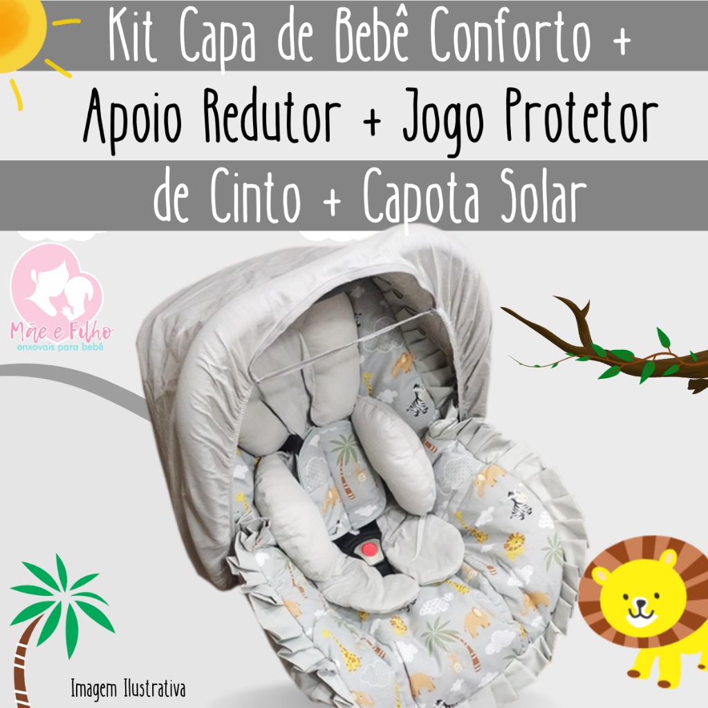 Capa de Bebe Conforto Acolchoada Jogo Protetor de Cinto Capota Solar e Apoio Redutor para Bebê 100% Algodão
