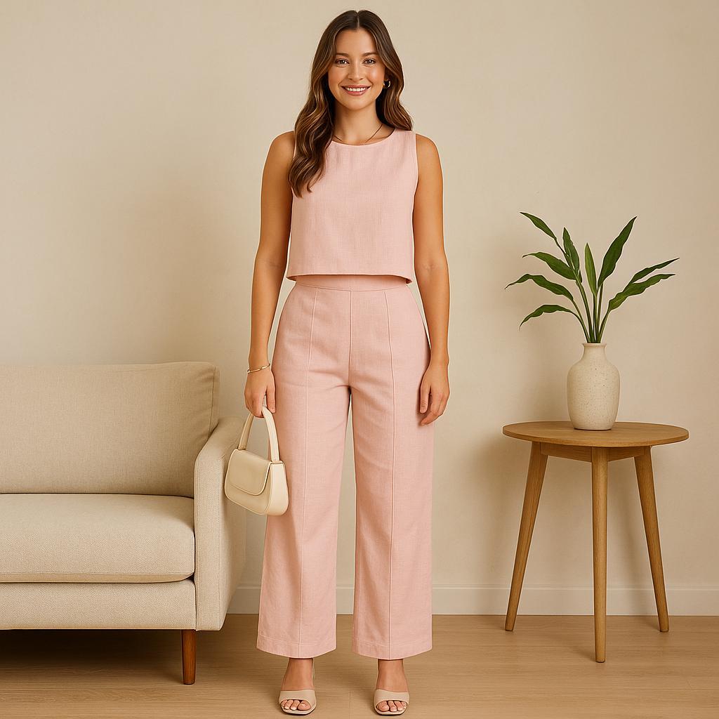 Conjunto Linho Pantalona Alfaiataria Calça e Regata Social Elegante Moda Casual Feminino Eloquencia