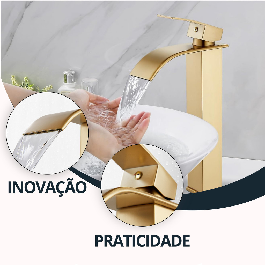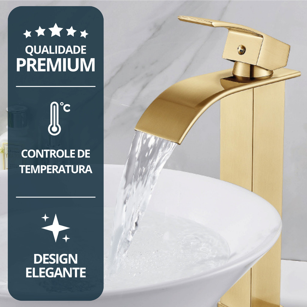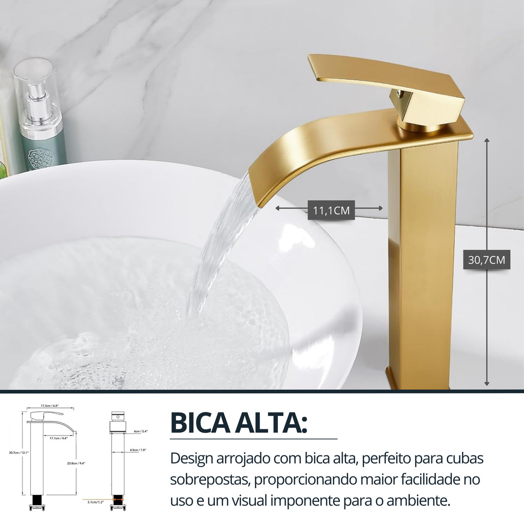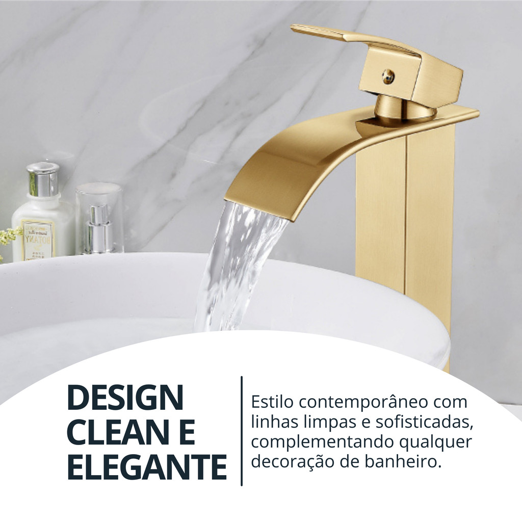 Torneira Cascata Banheiro Bica Alta Monocomando Dourada