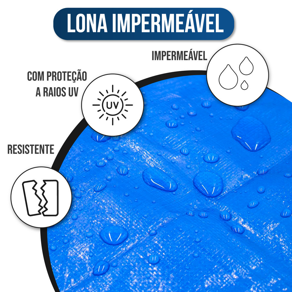 Lona Plástica de Proteção Cobertura Impermeável Azul 7x4 mts