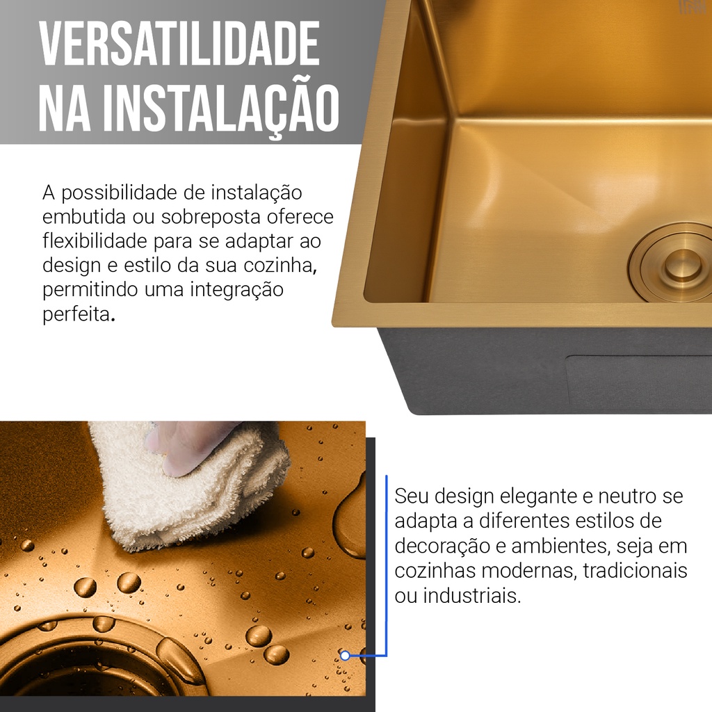 Cuba Cozinha Gourmet Quadrada Gold Dourado Inox Acessórios