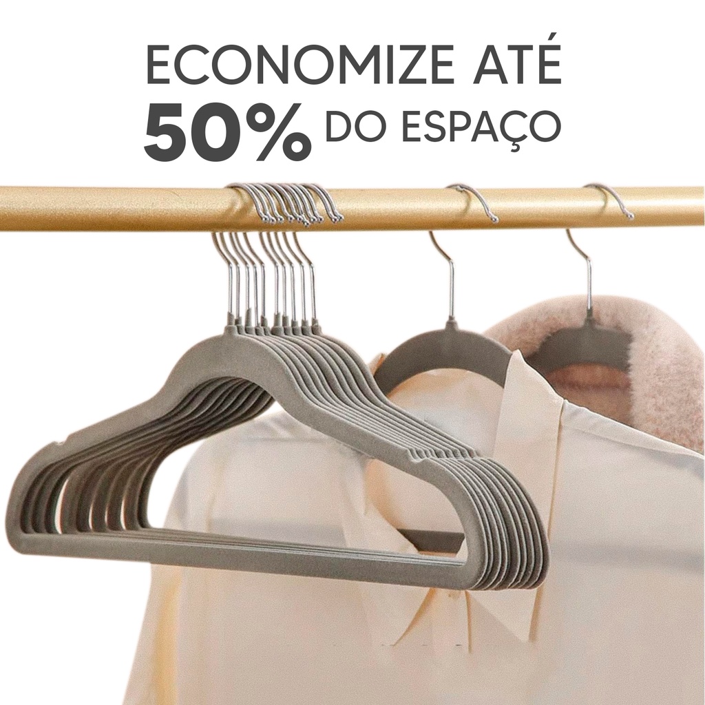 50 Cabides Veludo Cinza Slim Ultra Finos Antideslizante