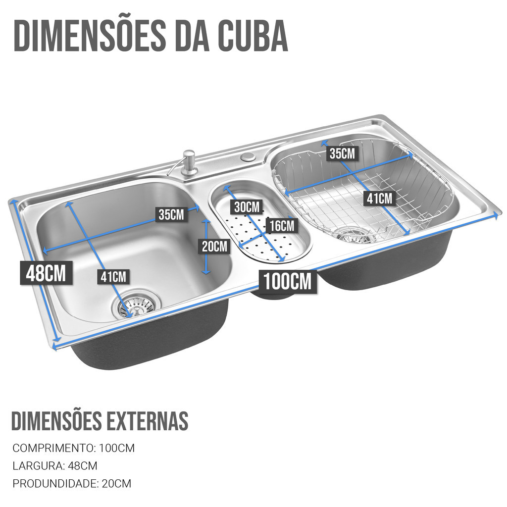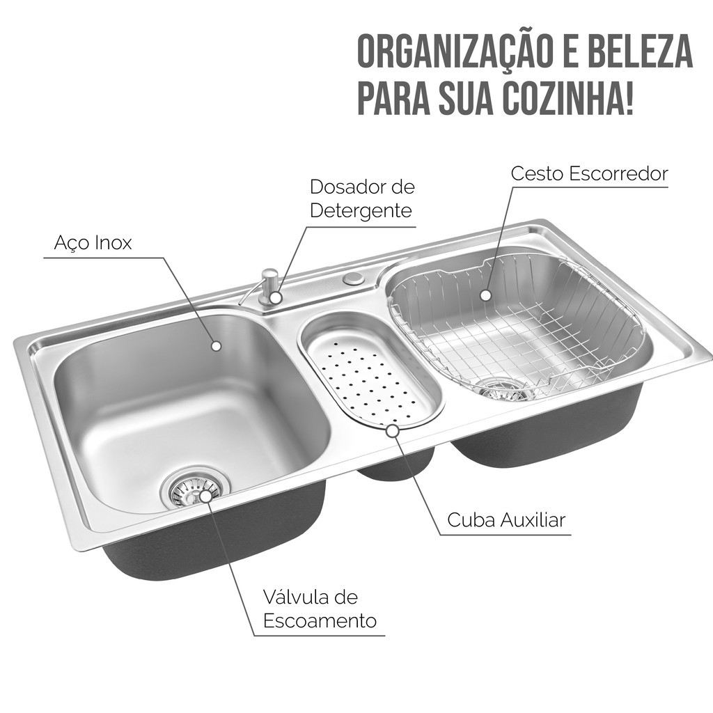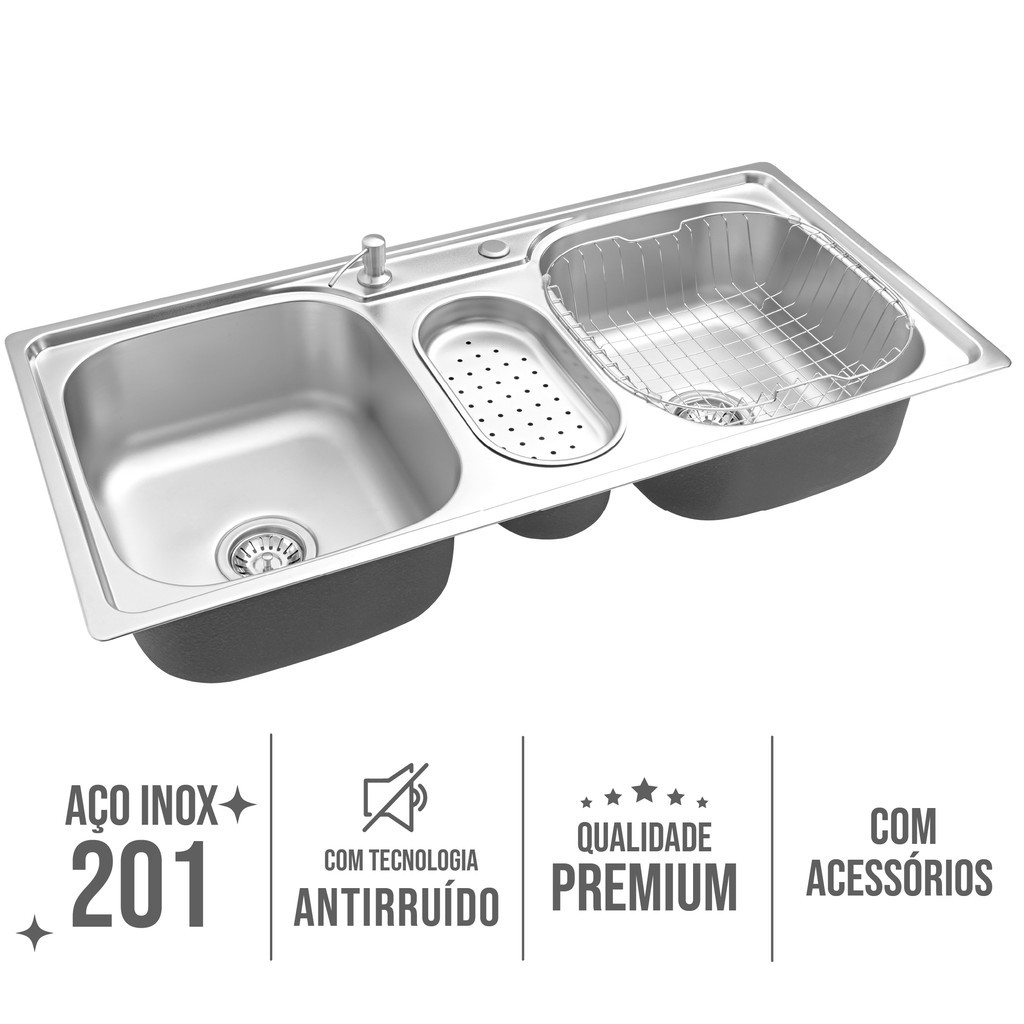 Cuba Inox Tripla Com Acessórios Pia Cozinha