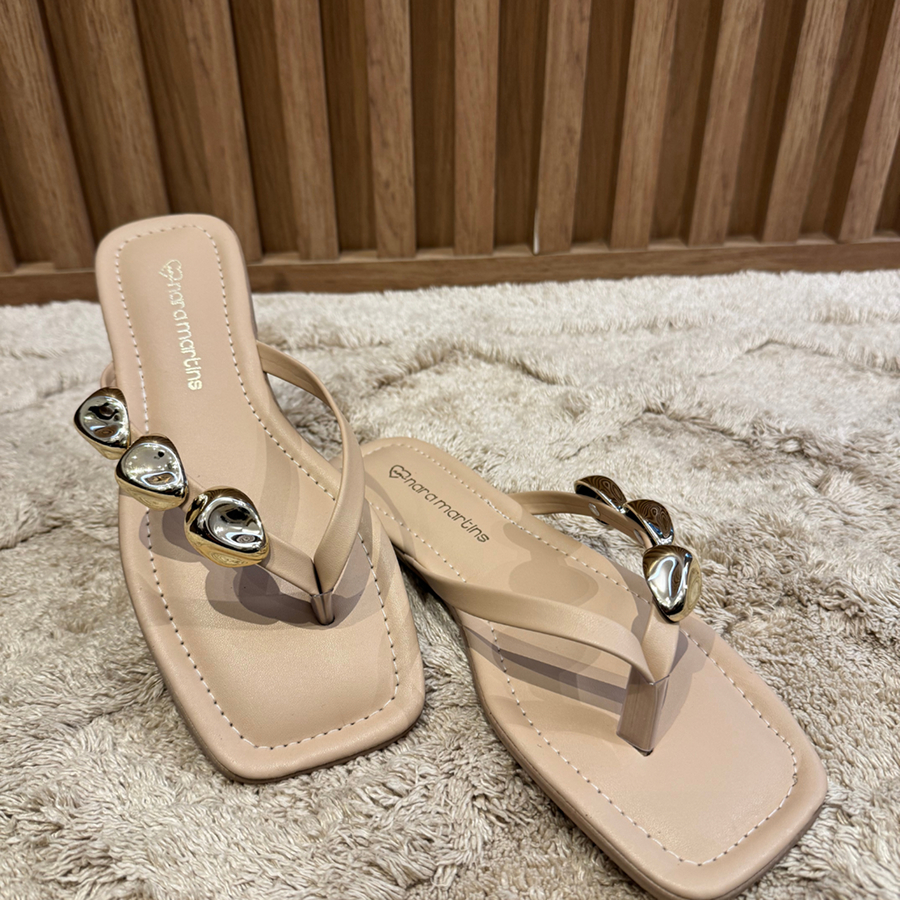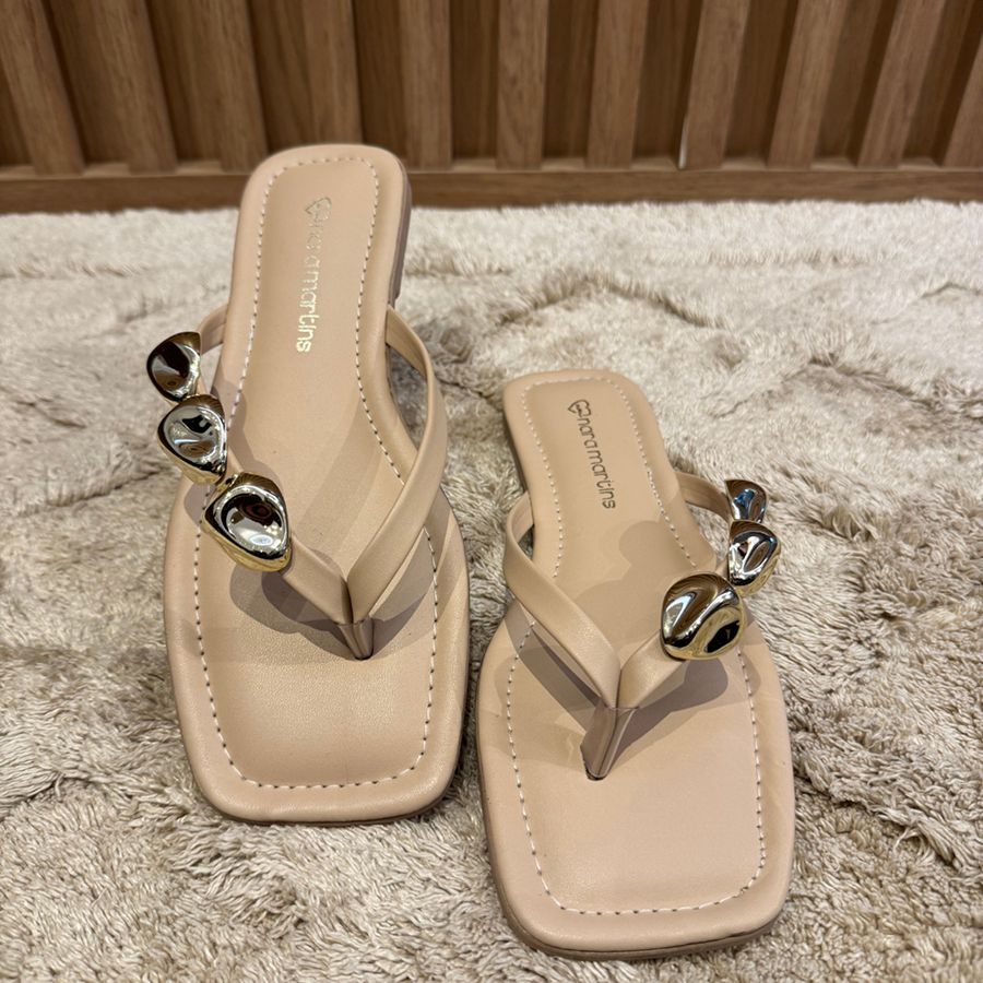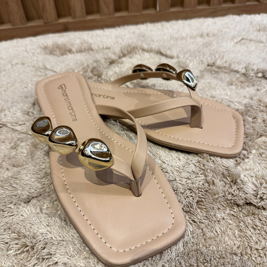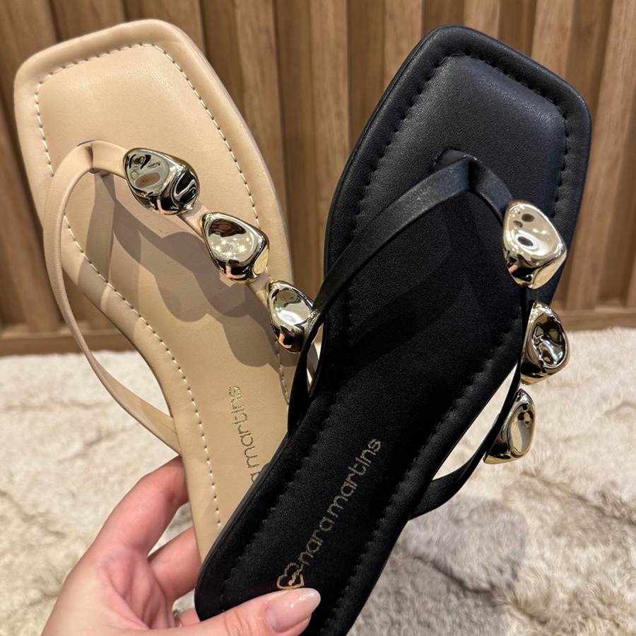 Chinela Sandália Rasteira Feminina Casual Confortável Leve Detalhes Metalizados Versátil Moderna