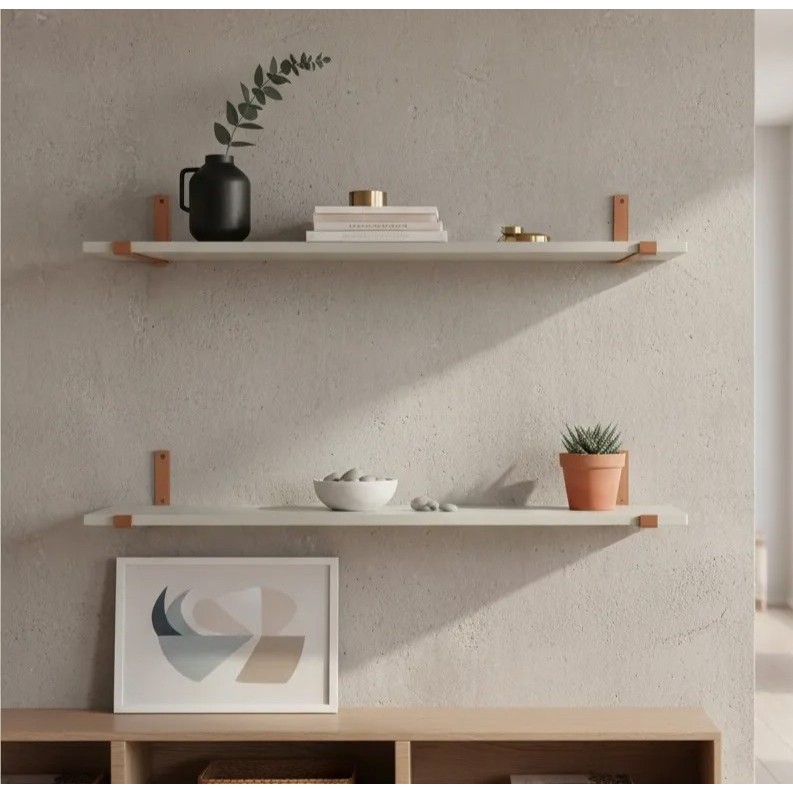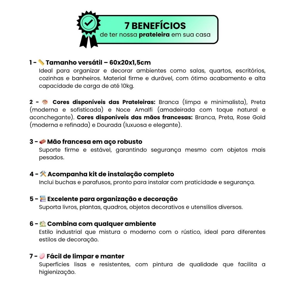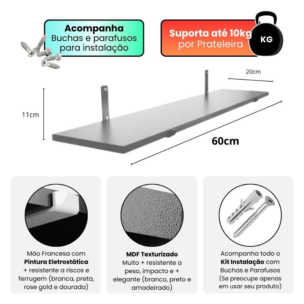 Kit 2 Prateleiras Industriais Branca 60x20cm C/ Mão Francesa Rose Gold