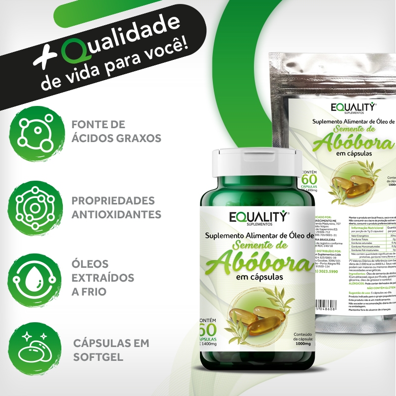 Óleo de Semente de Abóbora 1400 mg - Kit 3 Potes 60 cápsulas Softgel