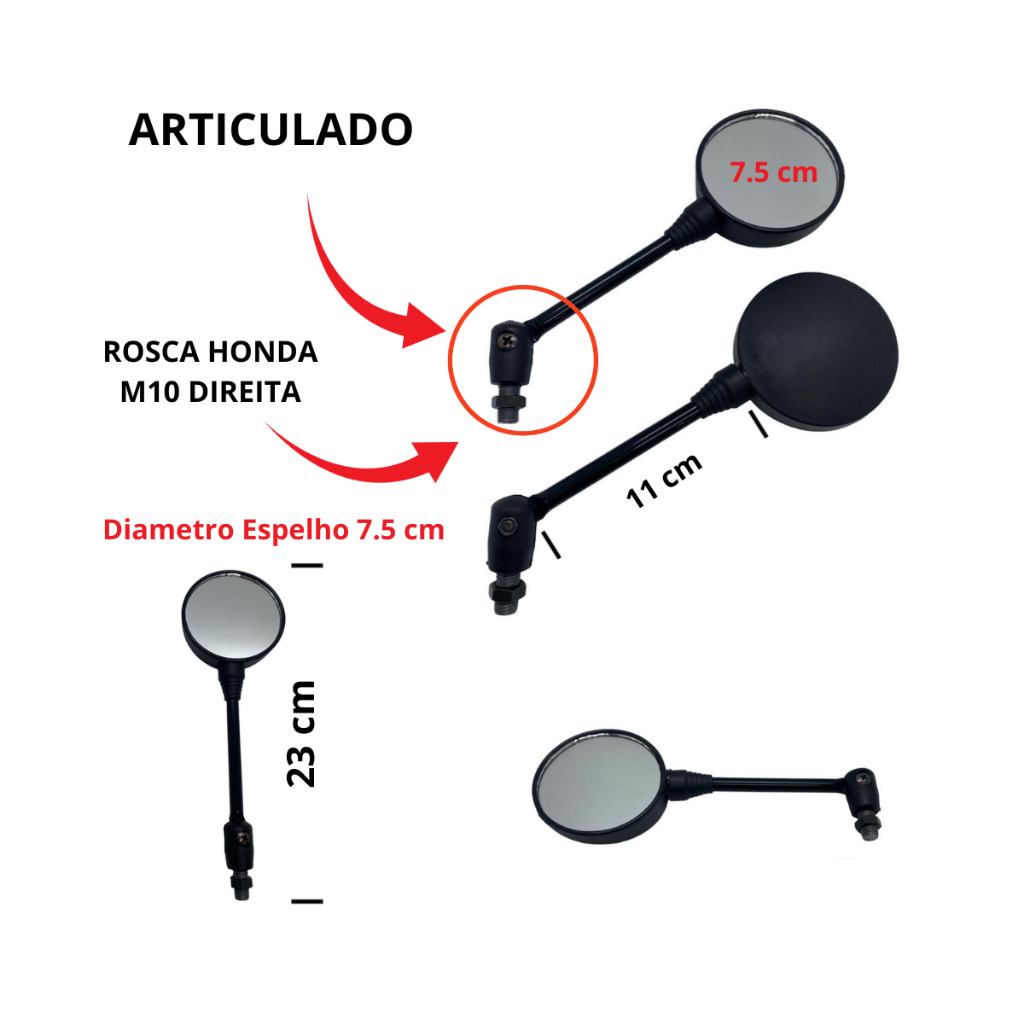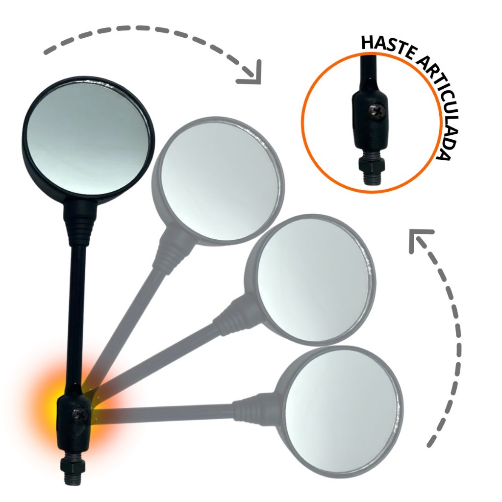 Retrovisor Mini Redondo Articulado CG Fan Titan Start Pop110 Pop100 Cbx250 Cb300 Xre300