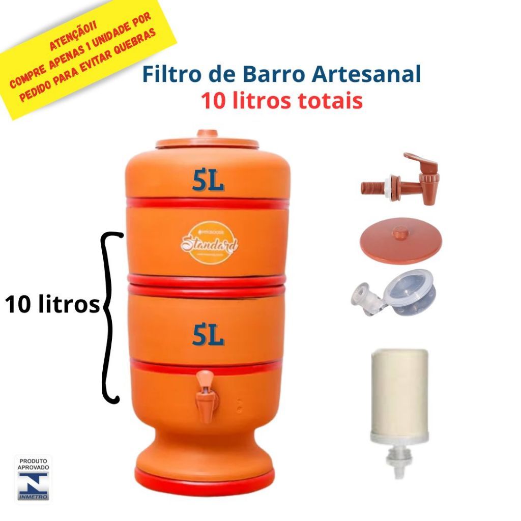 FILTRO DE BARRO ARTESANAL 10 LITROS TOTAIS (5L+5L) COMPLETO COM VELA E BOIA